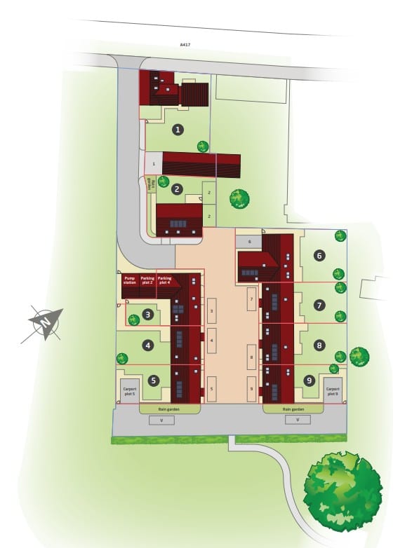 Set within a peaceful courtyard setting with private parking and eco-conscious design features, Plot 2 is countryside living at its finest. Undercover carport plus additional driveway parking come with this home.