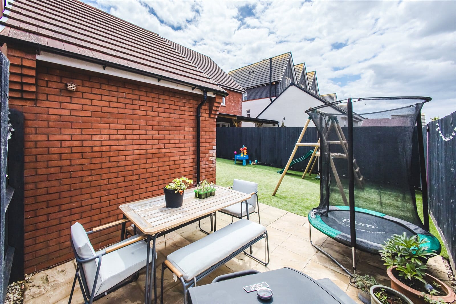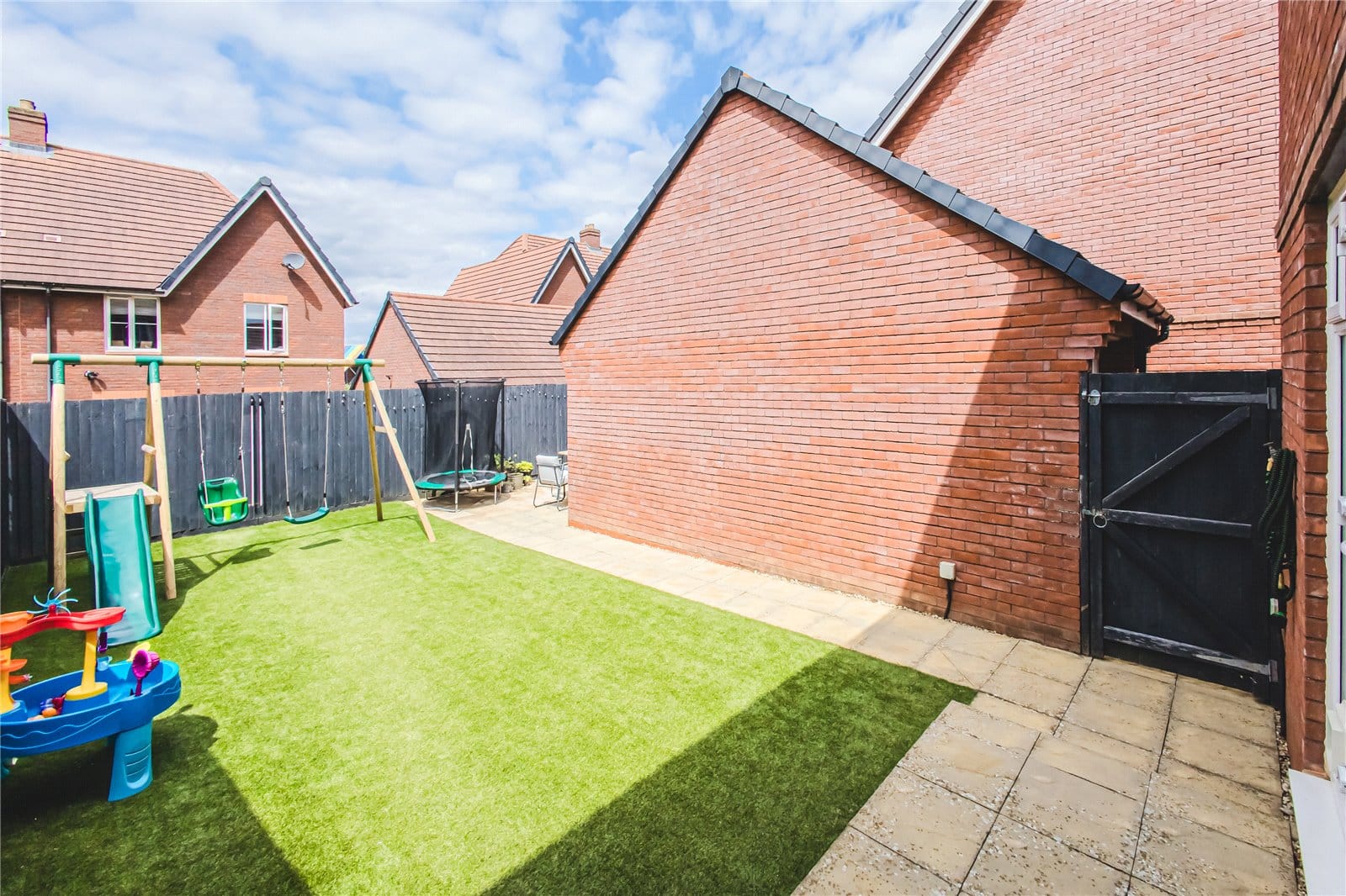 Externally, the rear garden has been mostly laid to astro turf with an additional patio area behind the garage.