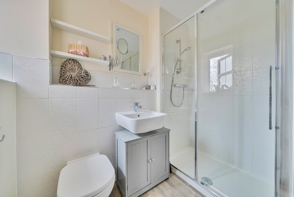 Upstairs, four well-proportioned bedrooms offer flexibility for family life, guests, or home working. The primary bedroom is spacious and serene, with ample room for wardrobes and a restful retreat feel. A sleek en-suite shower room enhances this room, while a family bathroom serves the remaining rooms, ensuring comfort for all.