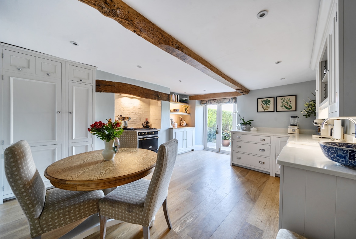 A beautifully presented, characterful three-bedroom cottage set within an exceptional plot approaching a quarter of an acre, with farmland views to the rear.