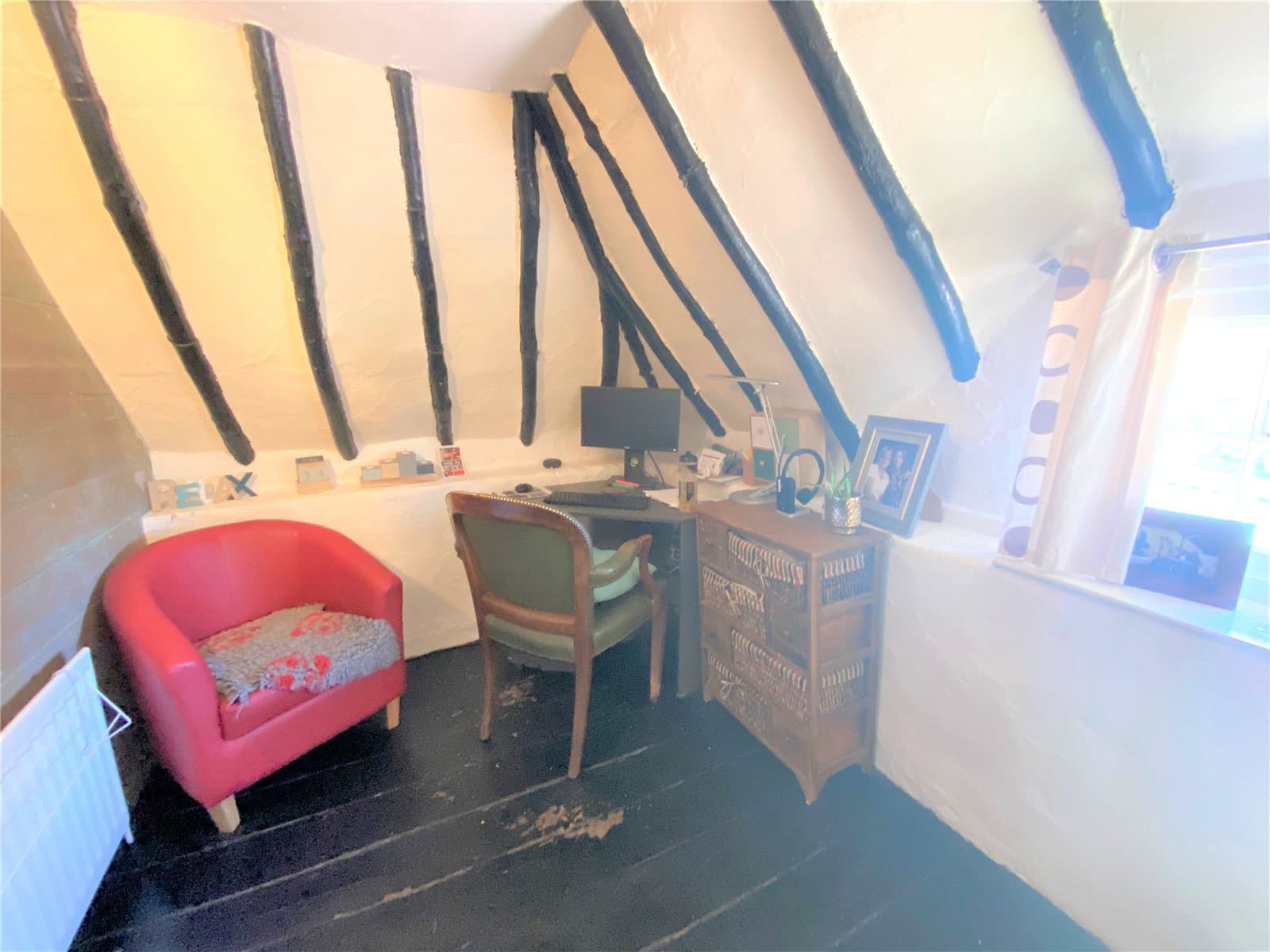 This charming home comprises; Lounge/Diner with fireplace feature, modern fitted Kitchen, Bathroom with shower over bath and a Master double Bedroom with study/dressing area. Externally benefiting from a lovely enclosed grass lawn rear Garden and driveway Parking.