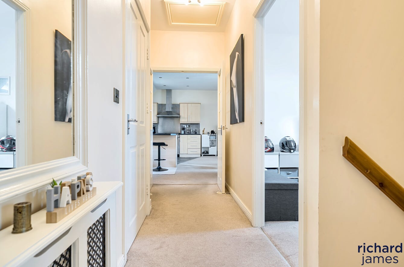 The property also features a large integral garage on the ground floor, providing excellent storage or parking, as well as driveway parking to the front.