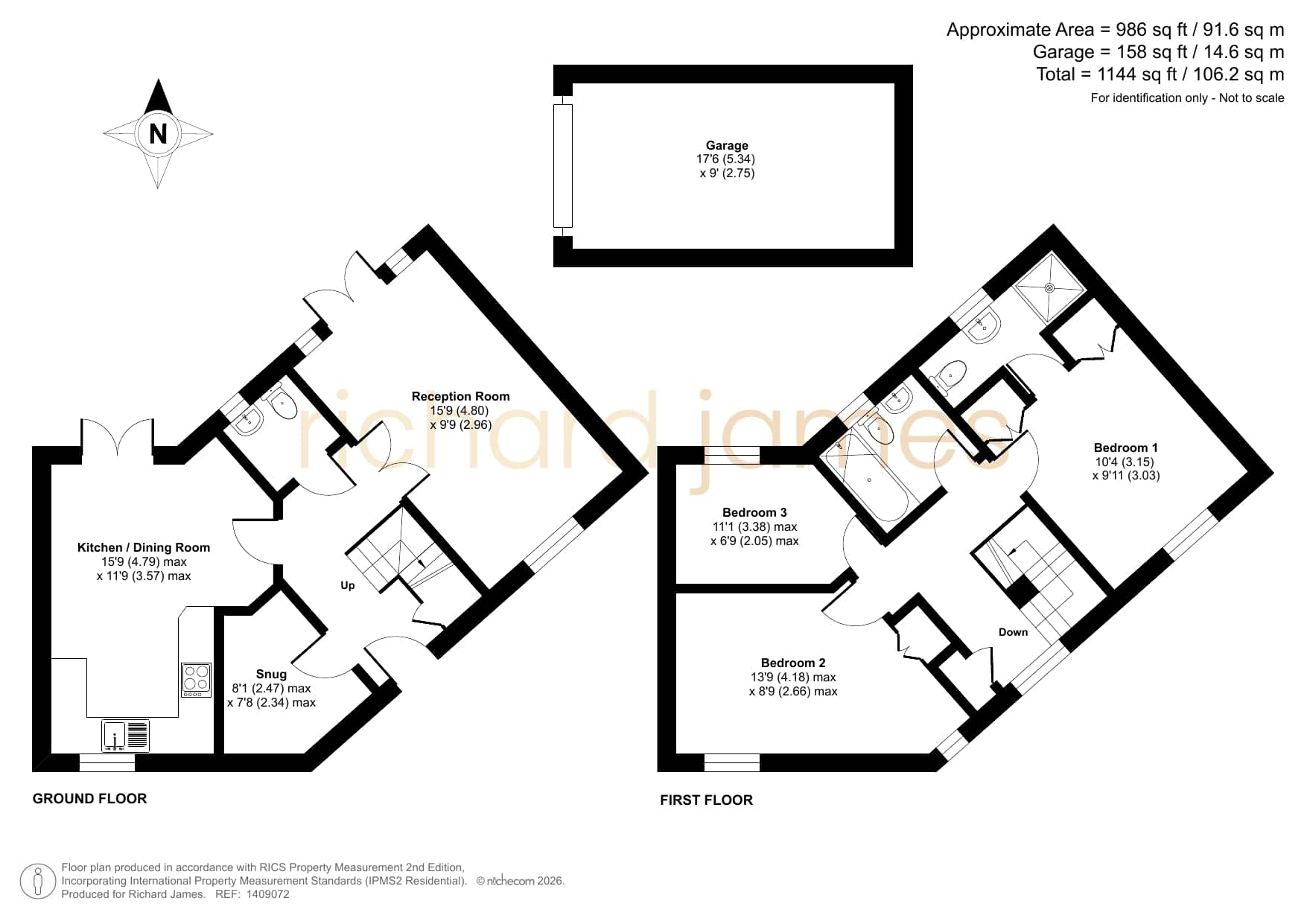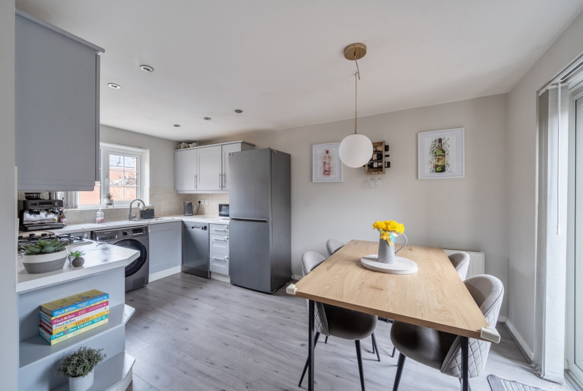 This well-proportioned three-bedroom home offers versatile living space arranged over two floors, extending to approximately 1,144 sq ft including the garage.
