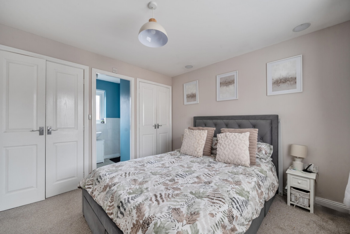 Upstairs, the first floor features three bedrooms, including two generous doubles and a well-proportioned third bedroom, all served by a family bathroom. The master bedroom also benefits from en-suite shower room and built in wardrobes. The arrangement lends itself well to families, guests, or those seeking additional workspace at home.