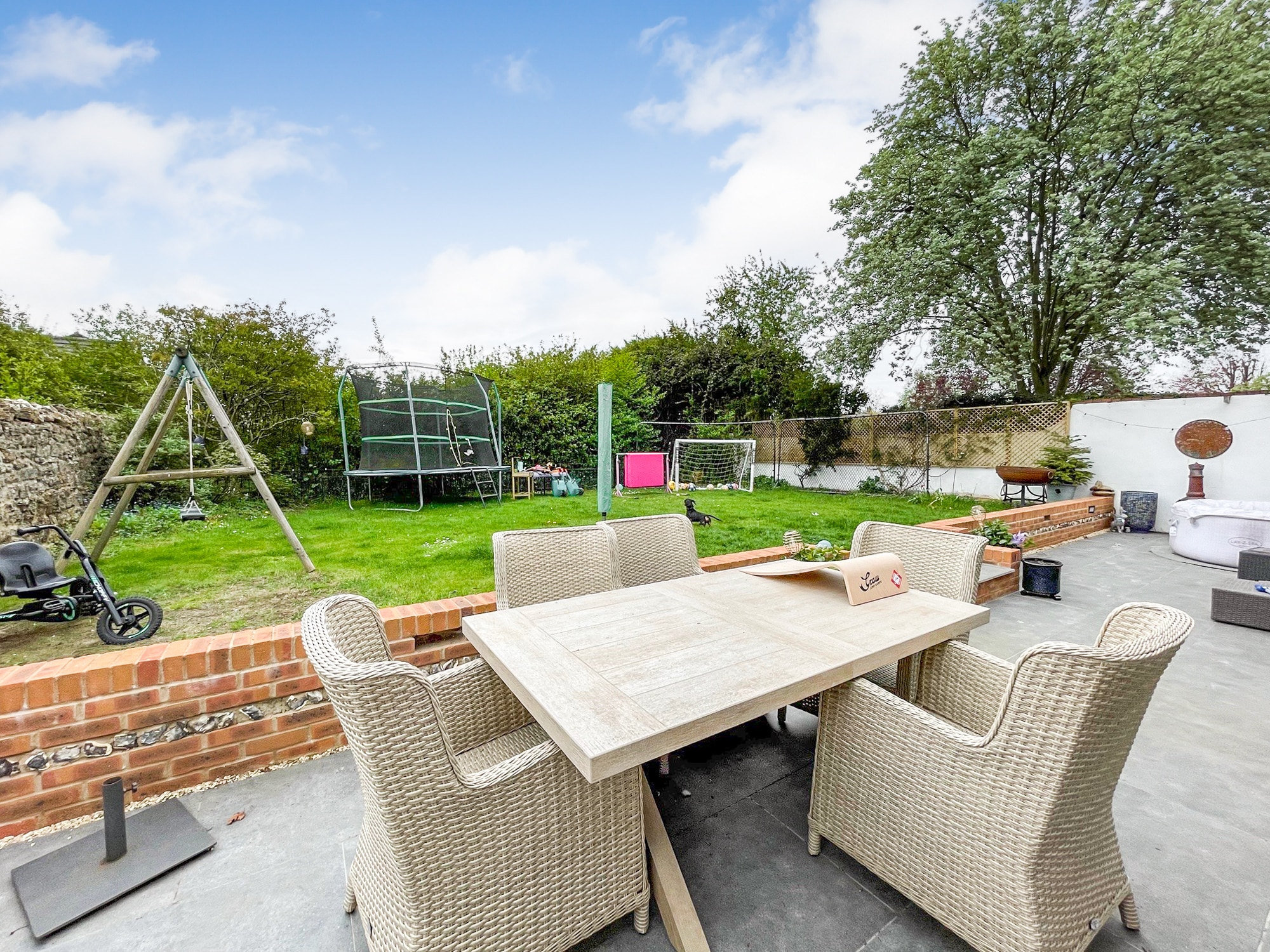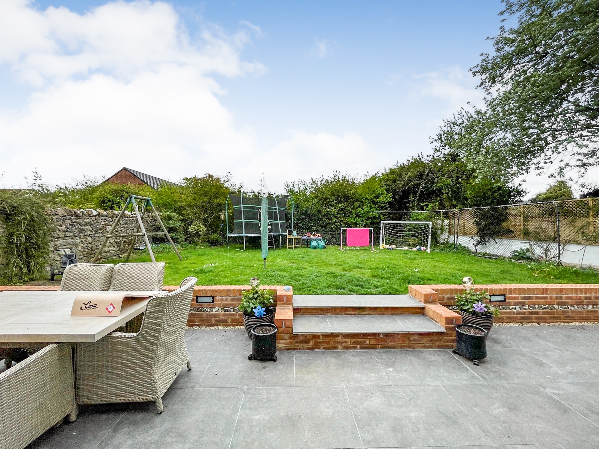 Externally, the gardens are predominantly laid to lawn and enjoy a stylish Mediterranean-inspired alfresco dining area, ideal for outdoor entertaining during the warmer months.