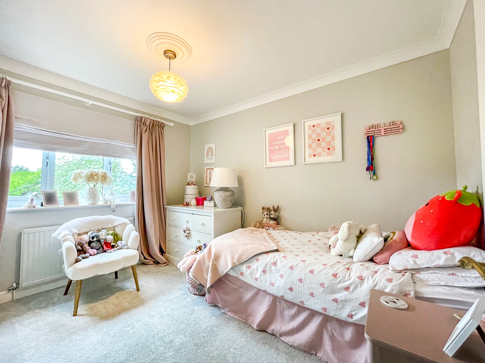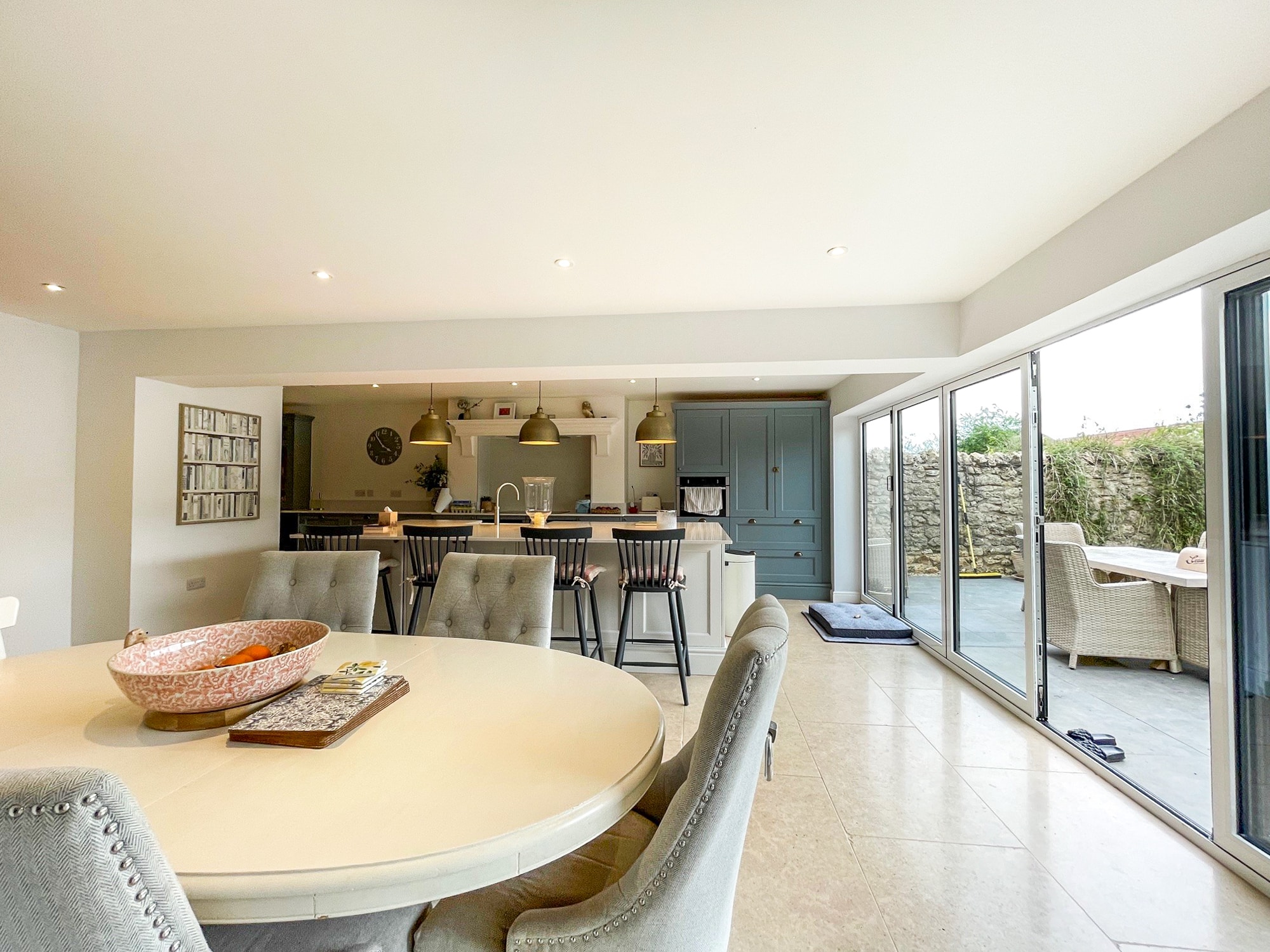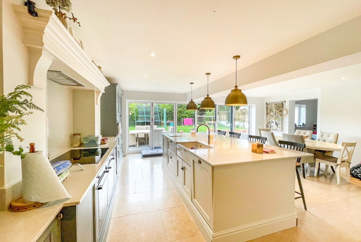 At the heart of the property is a beautifully designed kitchen/breakfast room, complete with bi-folding doors opening onto the rear garden—perfect for both everyday living and entertaining. The ground floor also features a spacious living room, separate playroom, and a dedicated study, providing versatile accommodation for families and home working alike. A further standout feature is the home gym, thoughtfully converted from the former double garage.