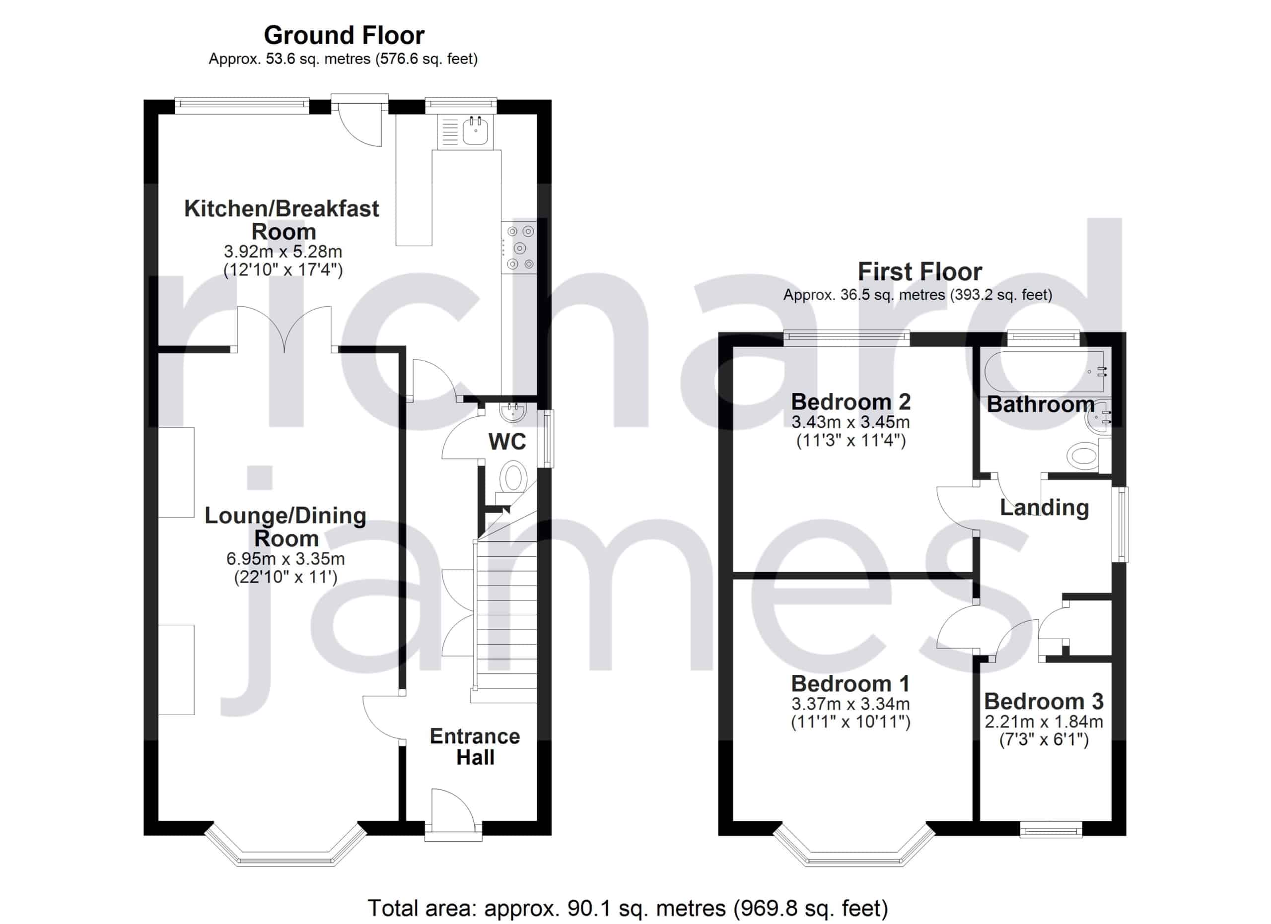The ground floor living accommodation comprises; entrance hall, W.C, a large bay window fronted lounge/diner plus a modern kitchen/diner with white goods. The first floor offers; first floor landing, a generous master bedroom, a good sized second bedroom plus the third bedroom and bathroom. Externally the property boasts a generous rear garden with a patio area, lawned area, brick built garage and decked seating area. To the front is a large driveway with parking for multiple vehicles. Council tax Band C.