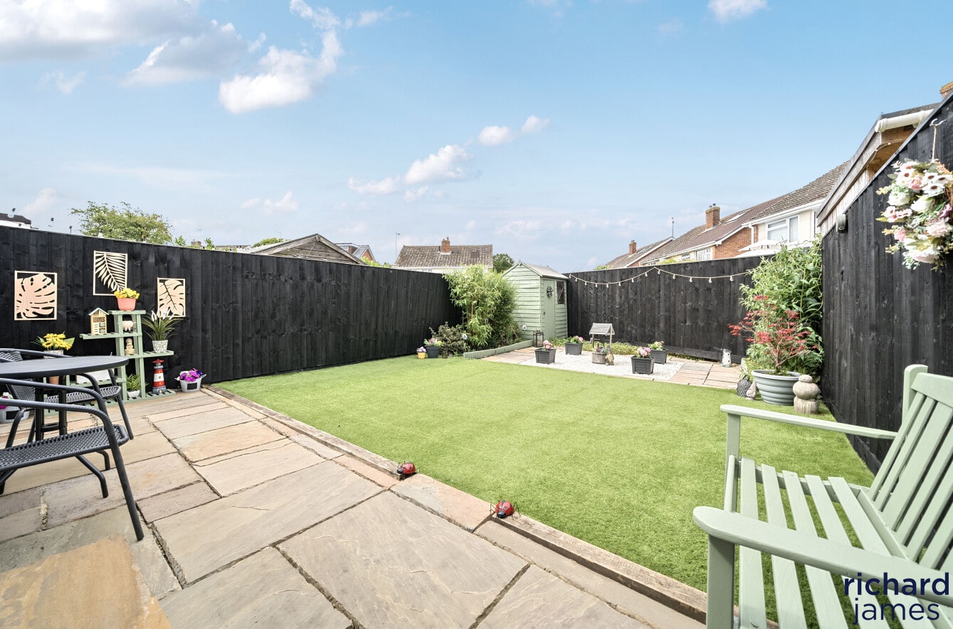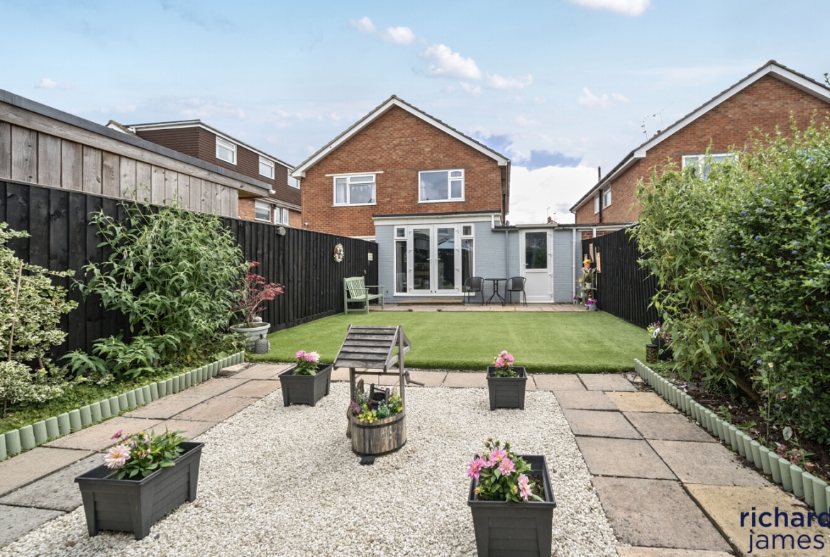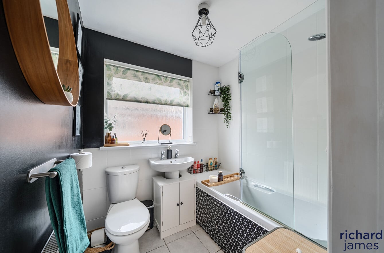 Upstairs, there are three well-sized bedrooms—two spacious doubles and a third single, ideal as a home office, nursery, or guest room—served by a modern family bathroom. The low-maintenance rear garden provides a sunny and private space for relaxing or entertaining without the fuss of regular upkeep.