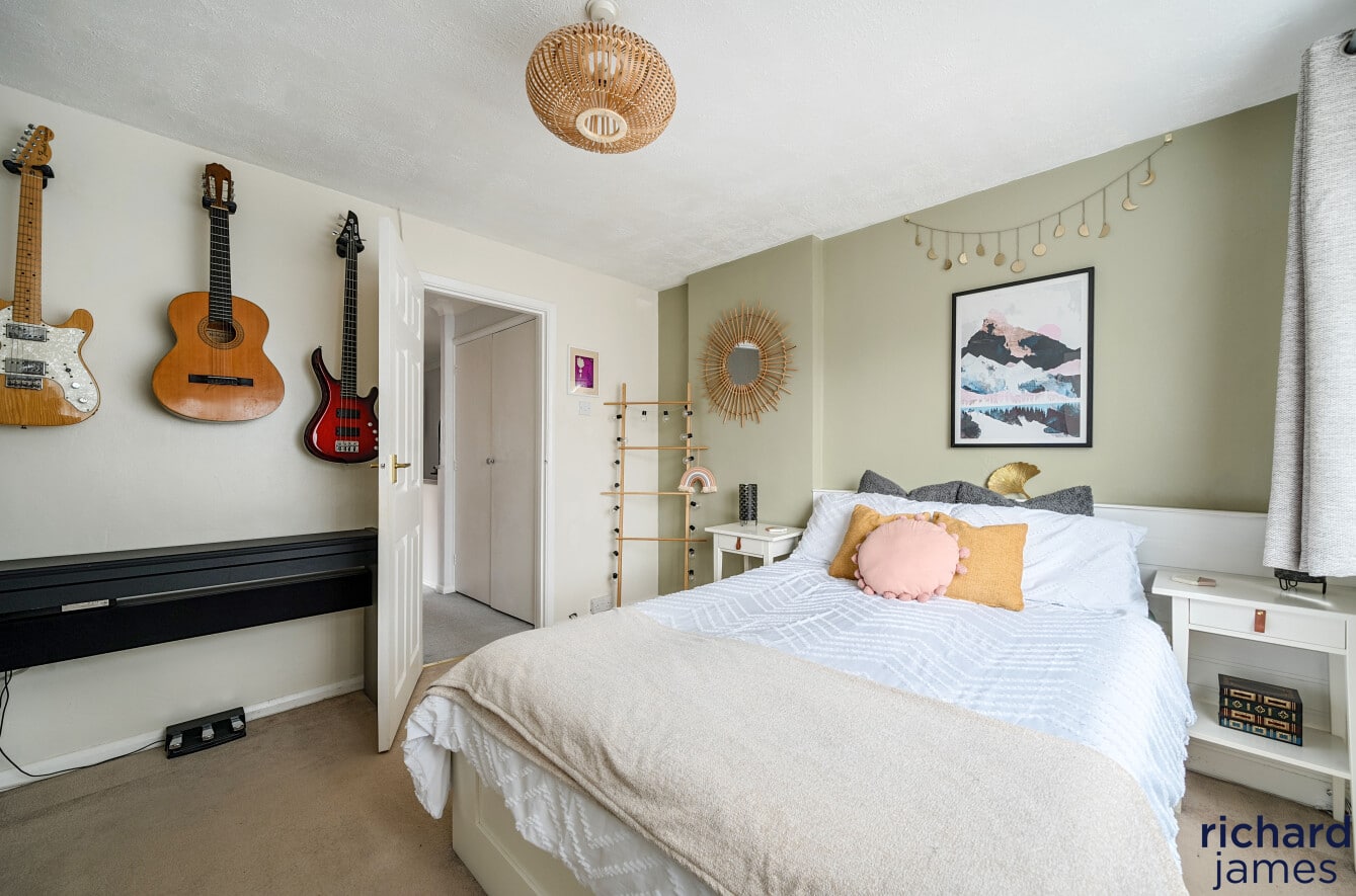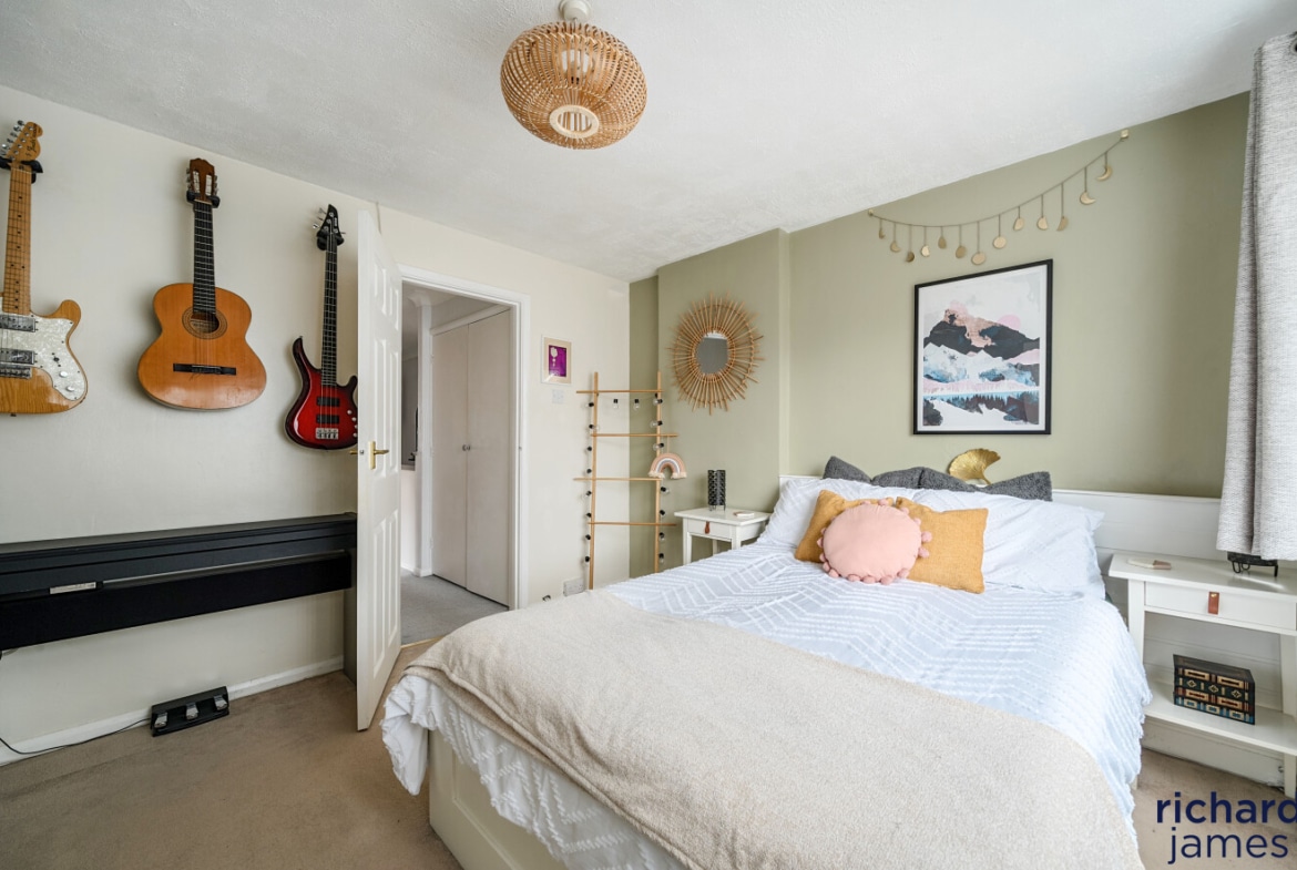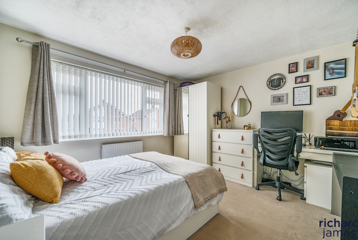 Upstairs, there are three well-sized bedrooms—two spacious doubles and a third single, ideal as a home office, nursery, or guest room—served by a modern family bathroom. The low-maintenance rear garden provides a sunny and private space for relaxing or entertaining without the fuss of regular upkeep.