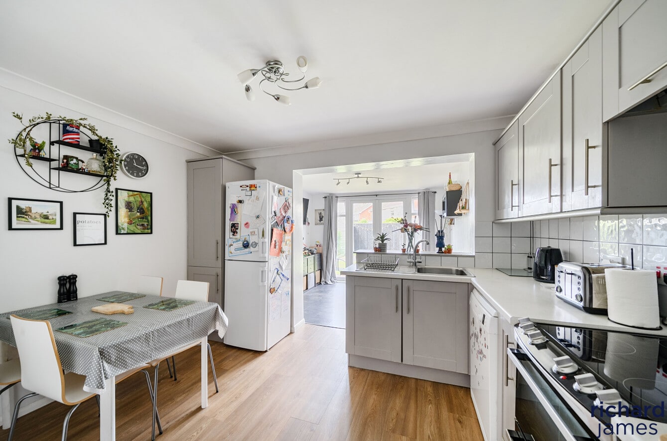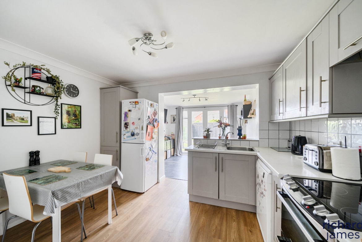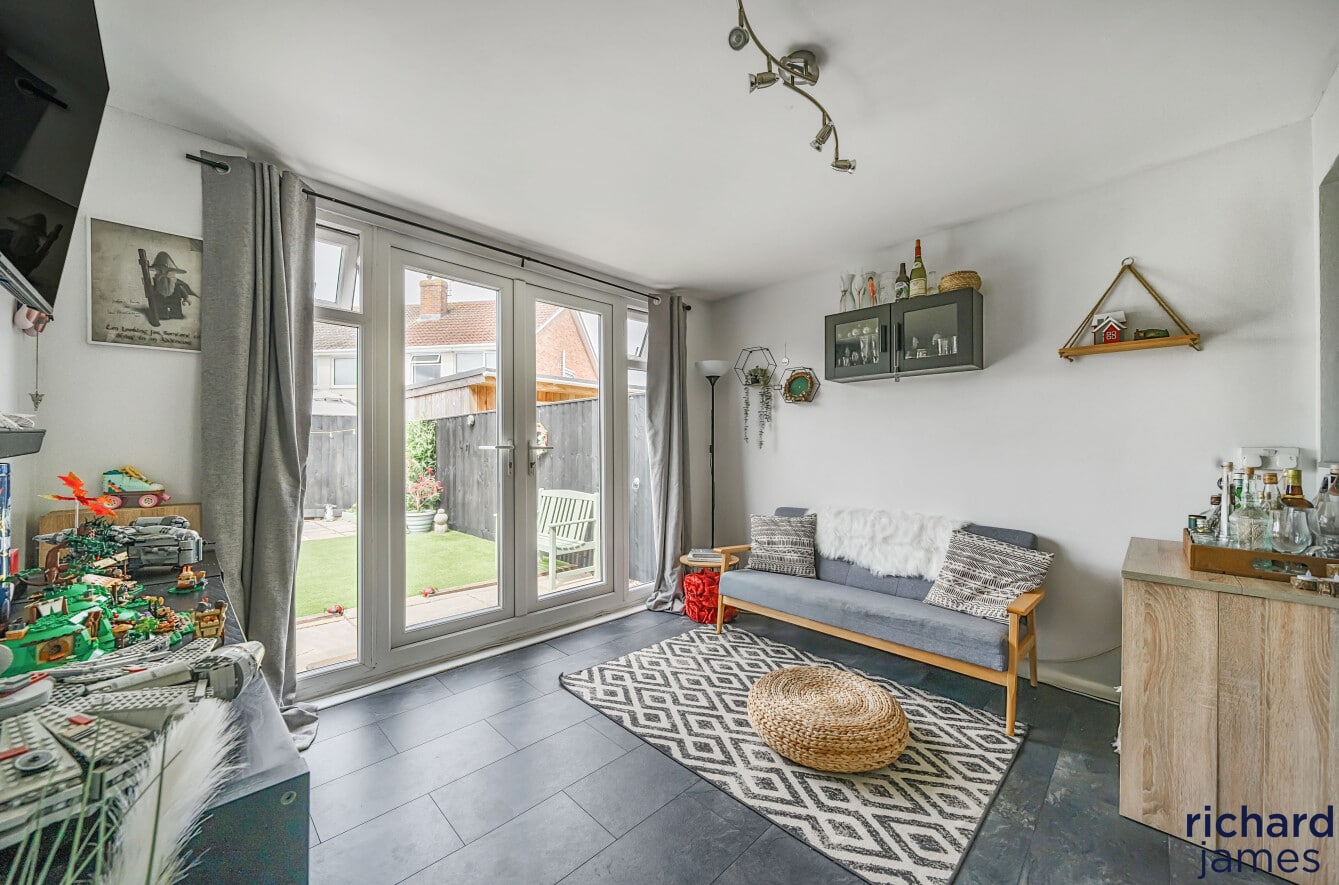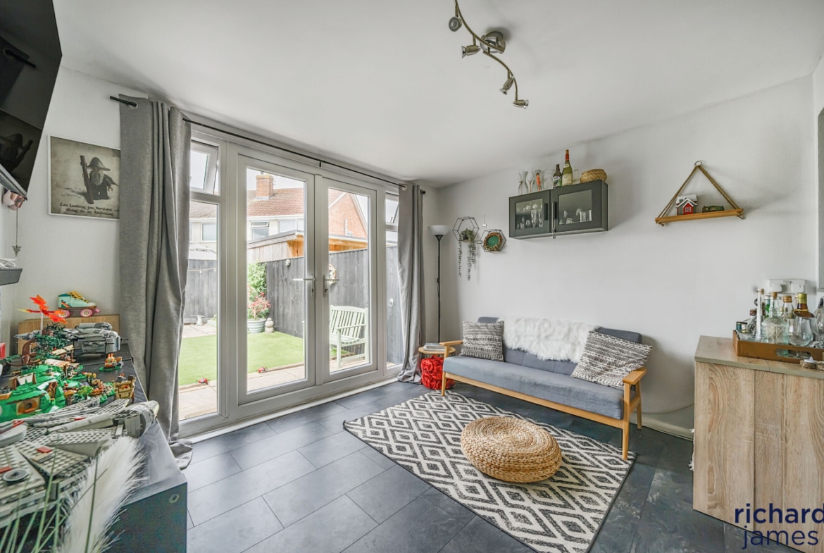 To the front, the property offers private driveway parking for up to three cars, while inside you’ll find a bright and welcoming living room, a convenient downstairs WC, and a beautifully finished kitchen diner that opens into a generous family space—created through a thoughtful rear extension. Whether it’s morning coffee, family dinners, or hosting guests, this open-plan layout is ideal for everyday life. There’s also internal access to the garage, offering secure storage or the potential to convert for further living space.