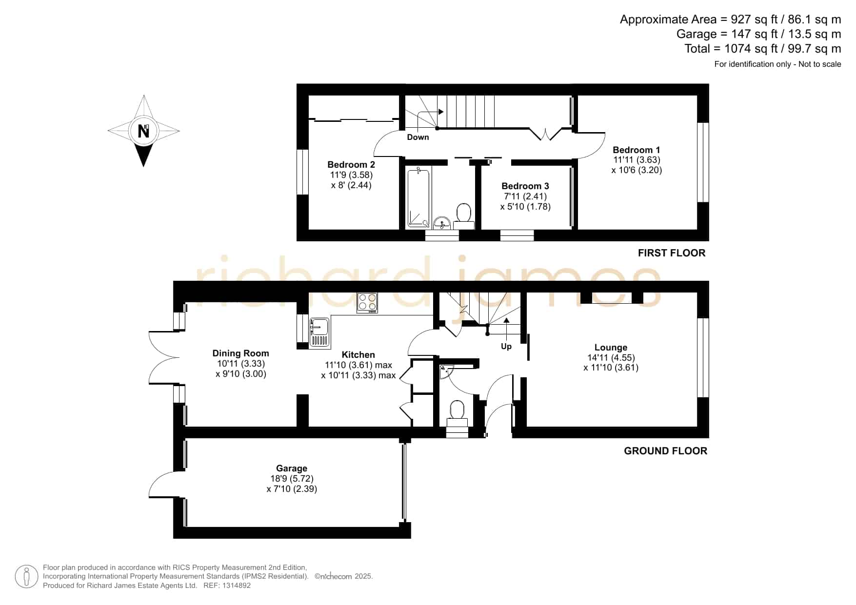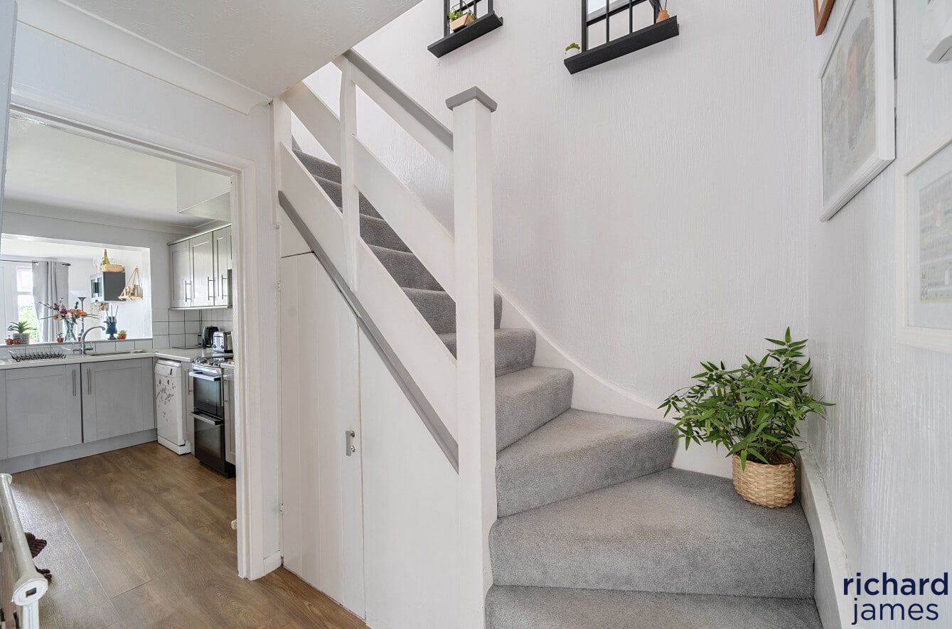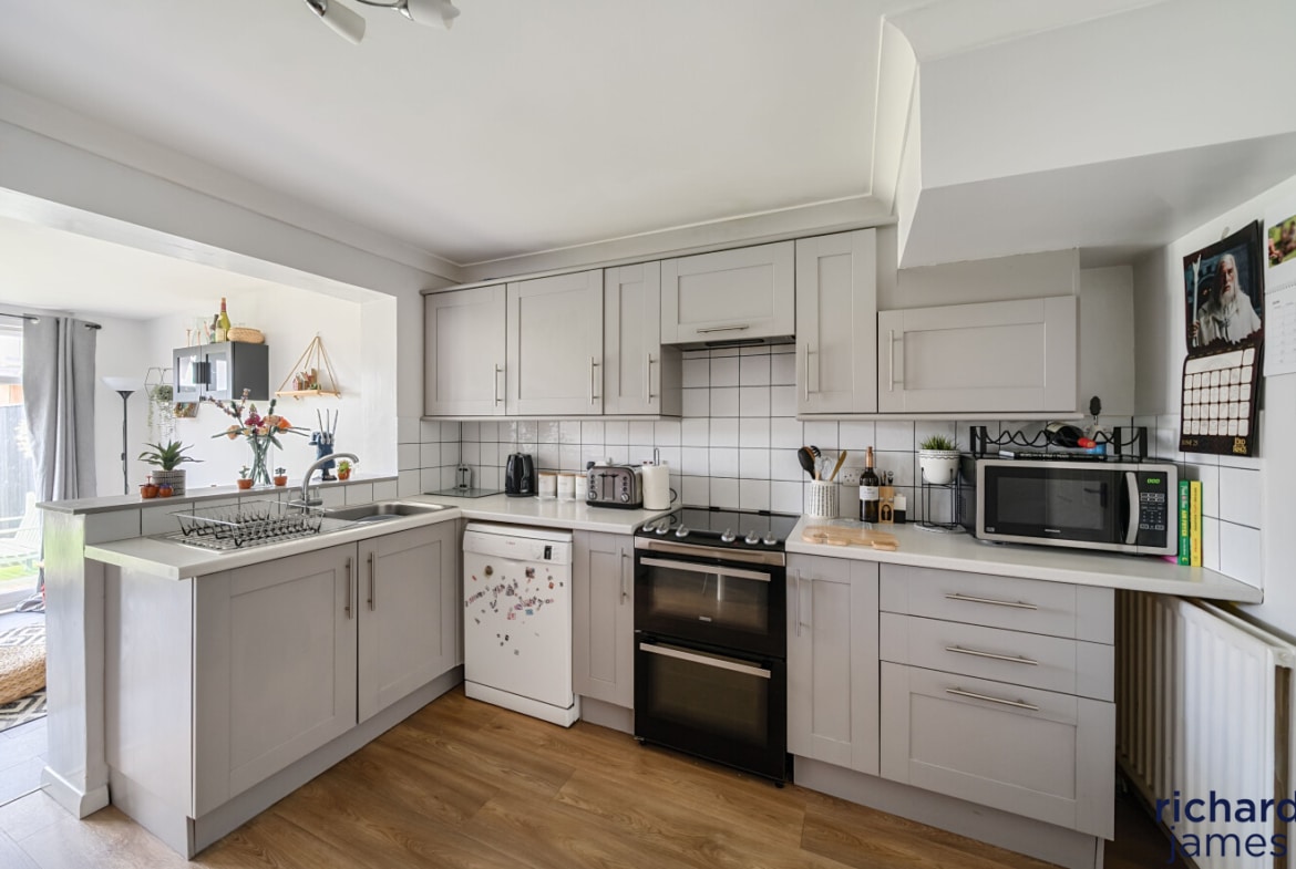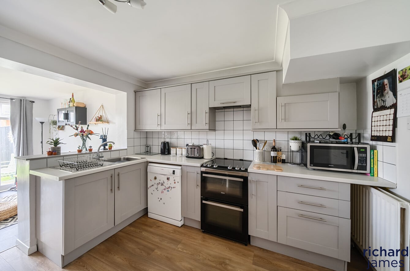 To the front, the property offers private driveway parking for up to three cars, while inside you’ll find a bright and welcoming living room, a convenient downstairs WC, and a beautifully finished kitchen diner that opens into a generous family space—created through a thoughtful rear extension. Whether it’s morning coffee, family dinners, or hosting guests, this open-plan layout is ideal for everyday life. There’s also internal access to the garage, offering secure storage or the potential to convert for further living space.
