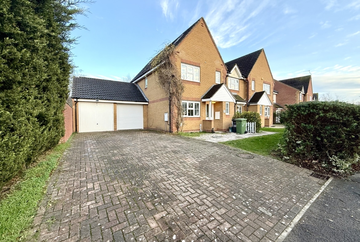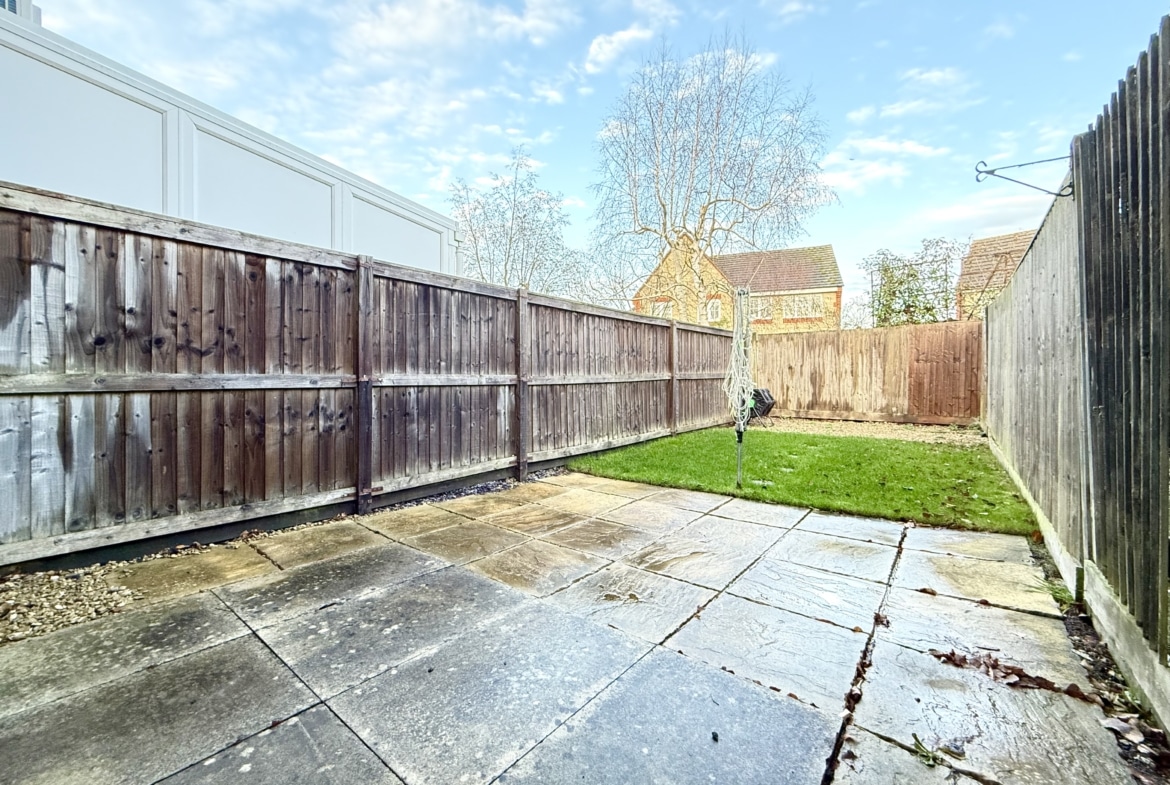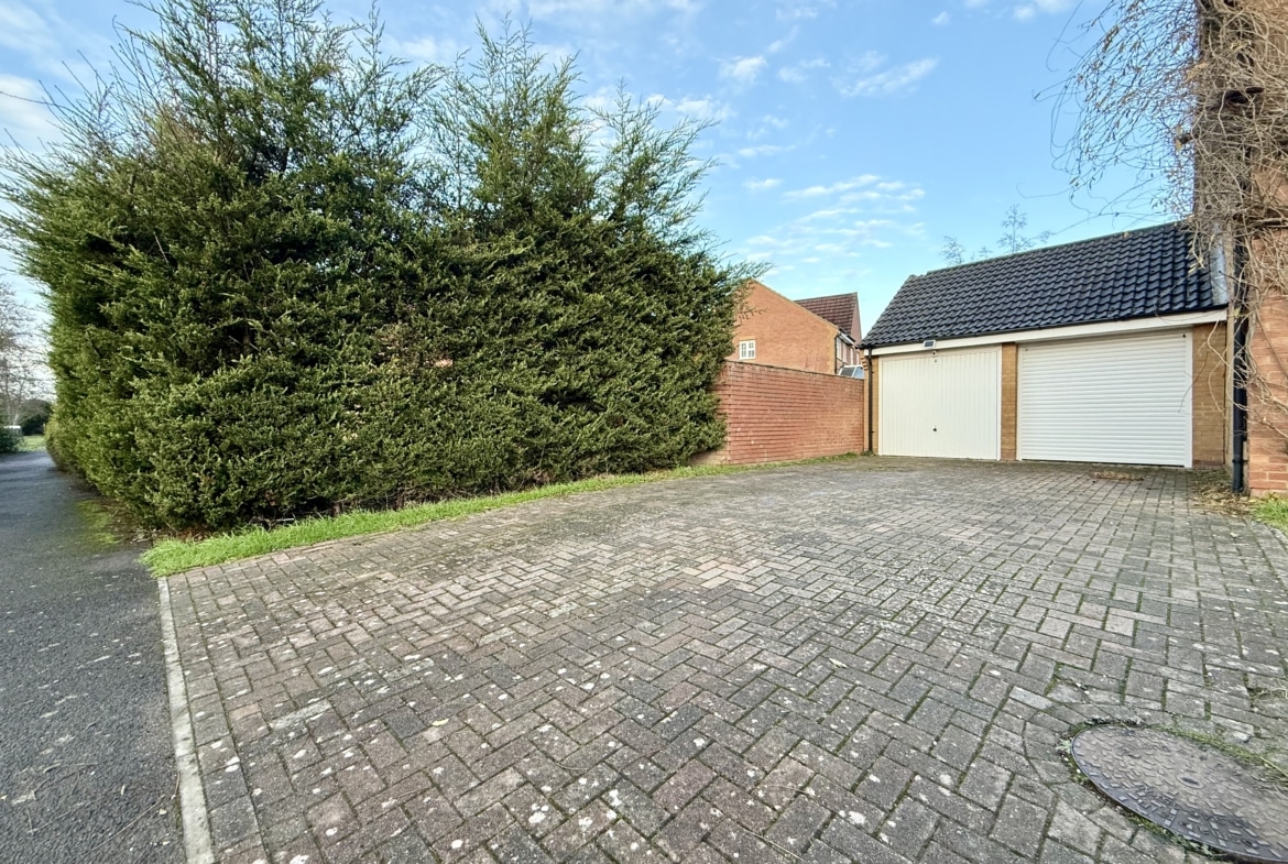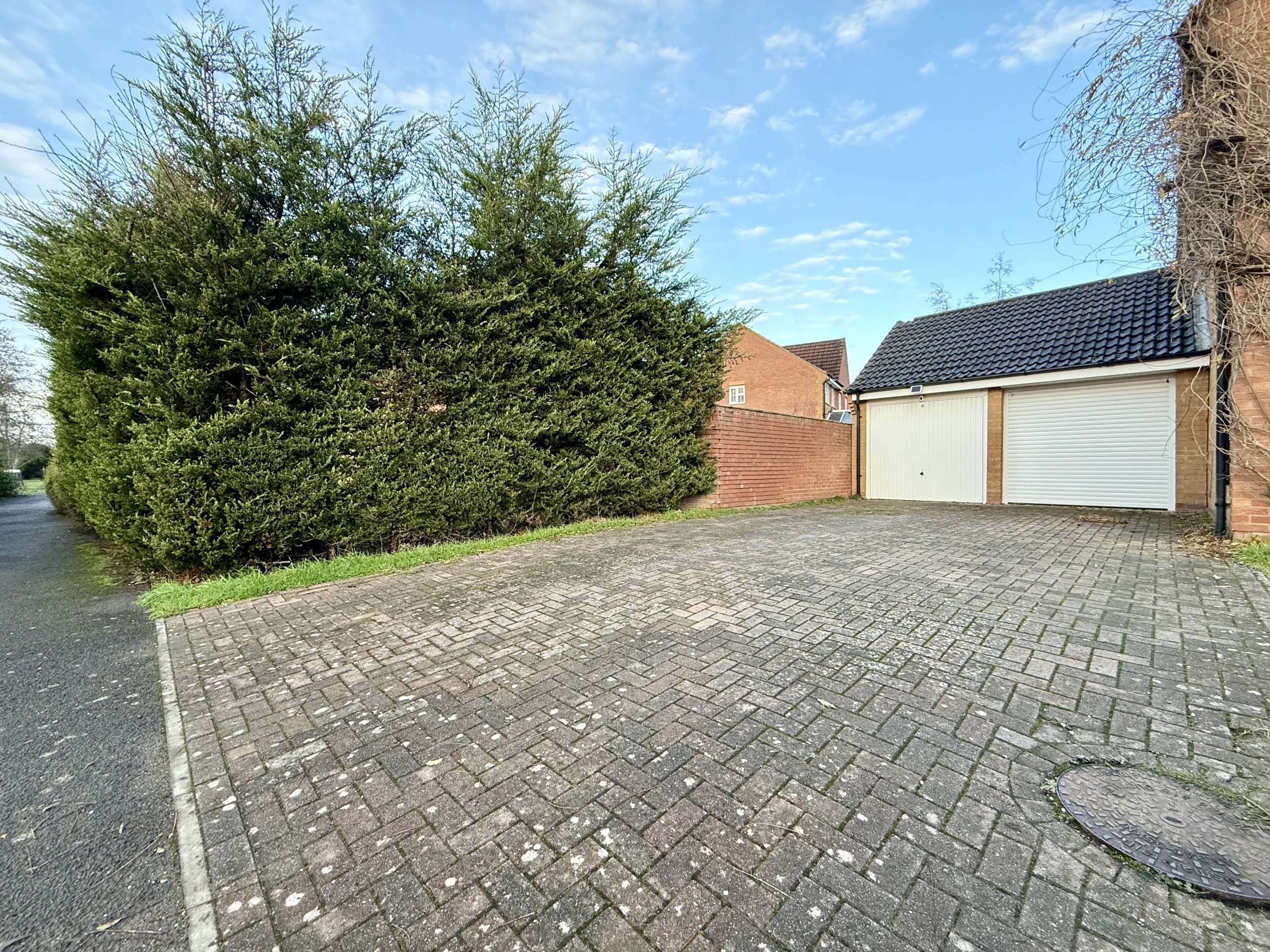 Externally, the property benefits from an enclosed rear garden with both lawn and patio areas—ideal for relaxing or entertaining. A private rear pathway provides direct access to the garage, which features a single up-and-over door, with additional driveway parking for two vehicles to the front.