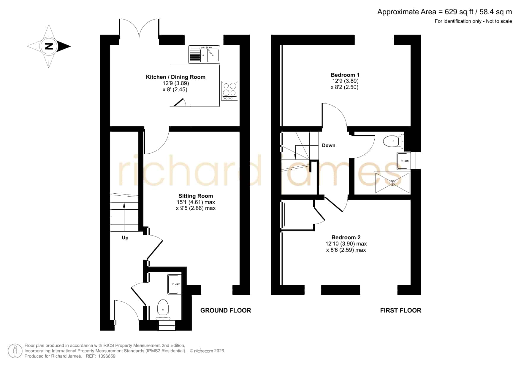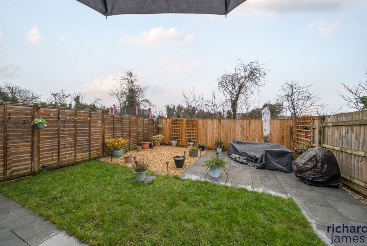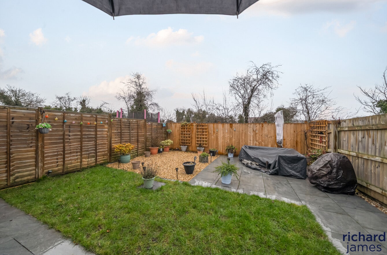 Upstairs, the property offers two well-proportioned double bedrooms, served by a contemporary shower room. Externally, there is driveway parking to the side of the property, a front garden with a path leading to the front door, and a larger-than-average, fully enclosed rear garden. The rear garden benefits from a patio area, lawn, and a garden shed, making it perfect for outdoor enjoyment.