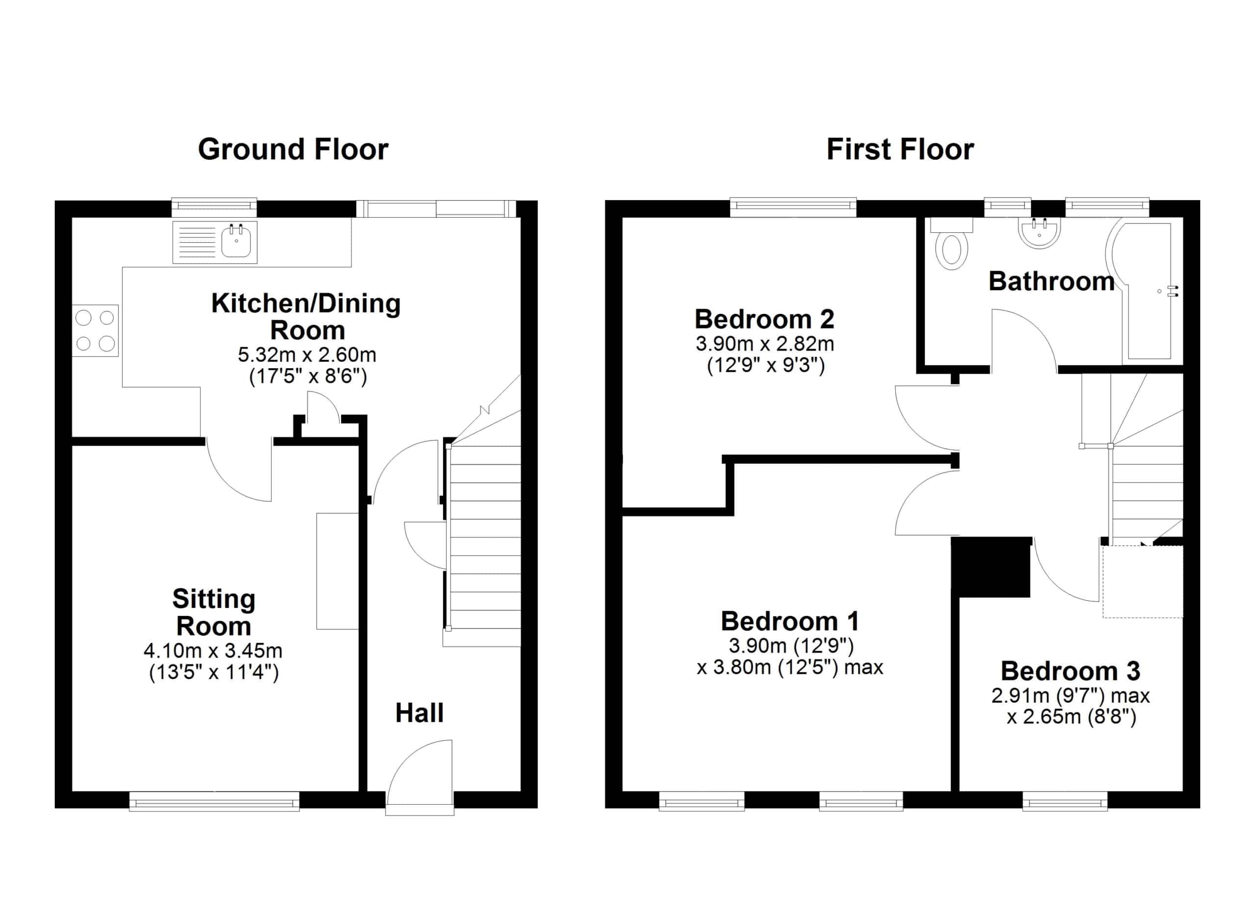The accommodation comprises; Hall, 17′ fitted Kitchen/Dining Room with patio doors opening into the Rear Garden and Sitting Room, with gas fire. With the Three generous sized Bedrooms, to the first floor.
