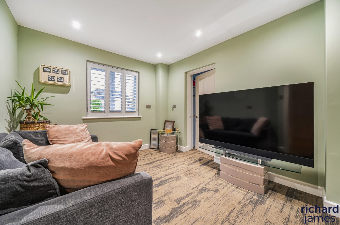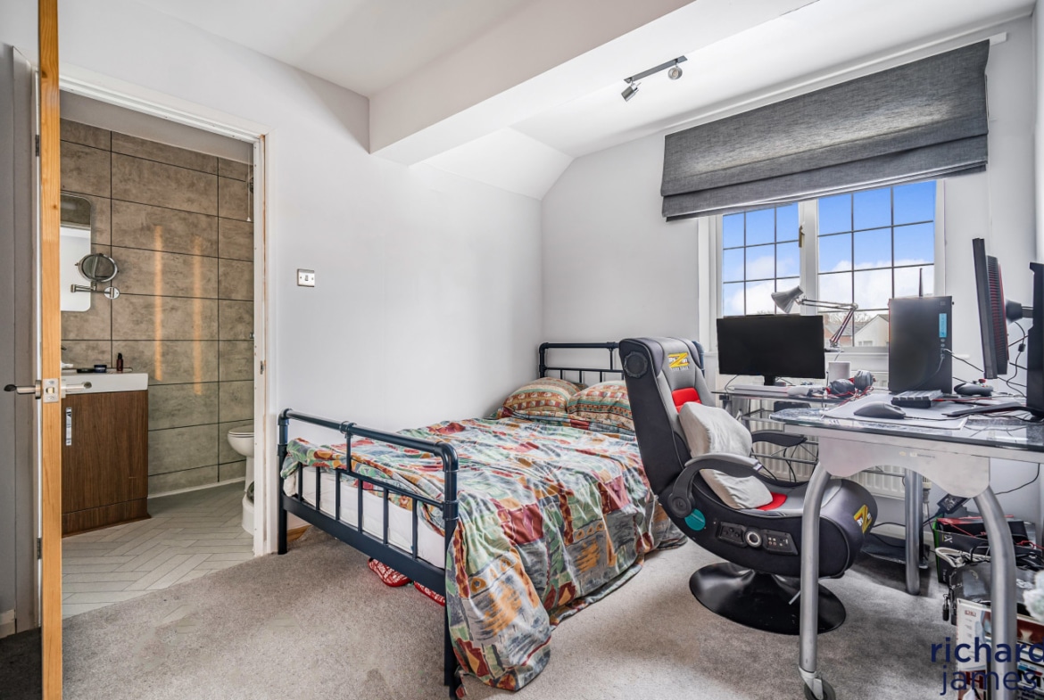 The property also features a beautifully landscaped garden with a patio area, ideal for enjoying al fresco dining on warm summer evenings. Upstairs, the master bedroom comes complete with an en-suite bathroom and built-in wardrobes, while the three additional bedrooms offer ample space for a growing family or visiting guests. One of these bedrooms also has an ensuite shower room and bedroom two has its own door to the main family shower room. Both of these have been re-fitted by the current owners. With a double garage and private driveway providing secure parking and easy access to local amenities.