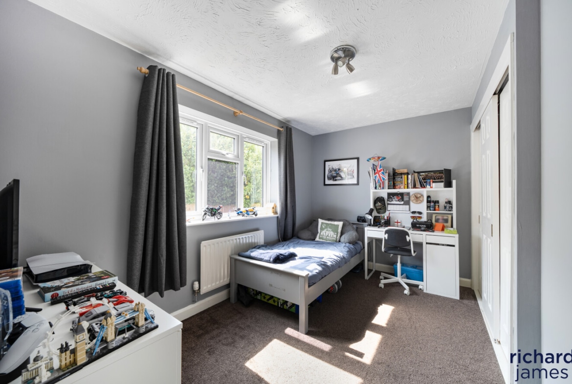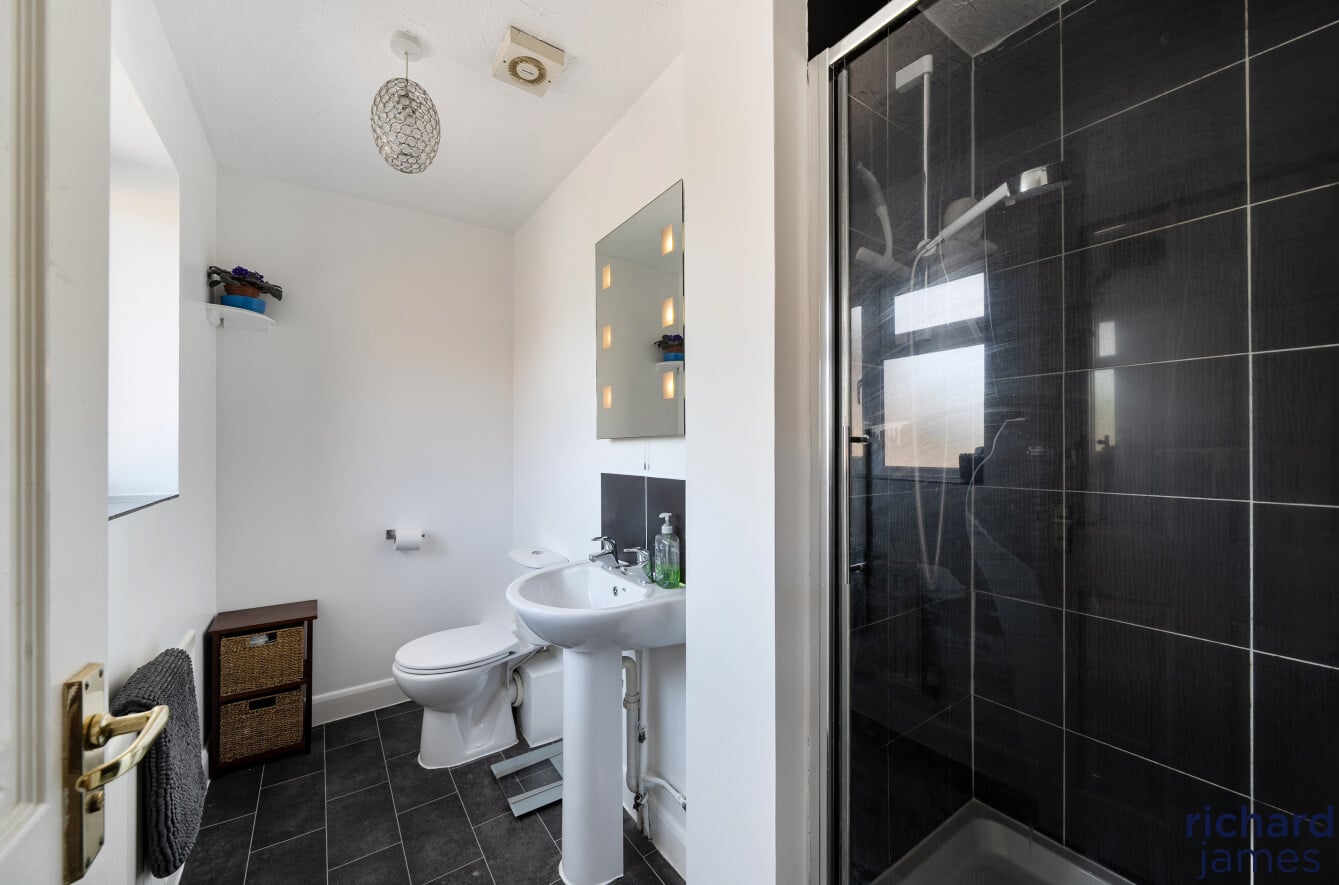 Upstairs, you’ll find three well-proportioned bedrooms, including a generous principal bedroom with fitted wardrobes, which also benefits from an ensuite shower room. The second bedroom also has fitted wardrobes. A contemporary family bathroom completes the first-floor accommodation.
