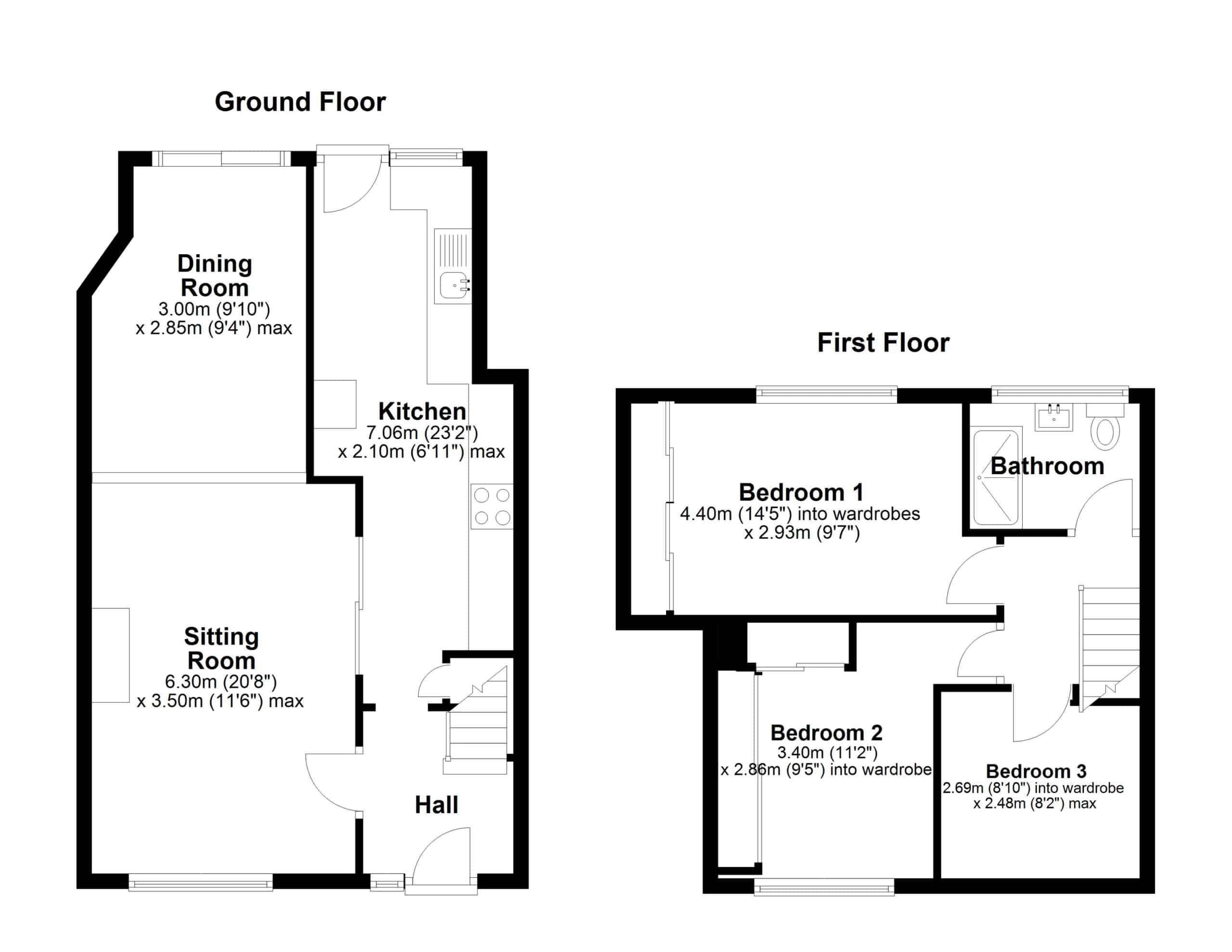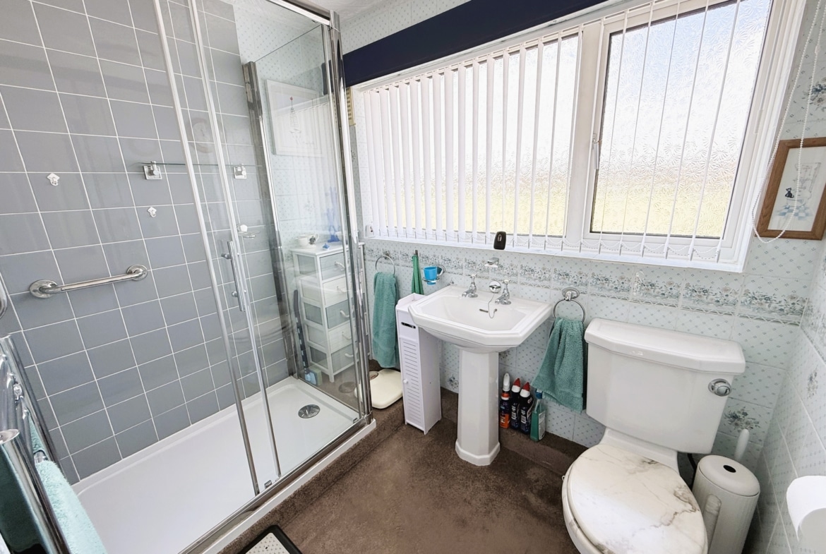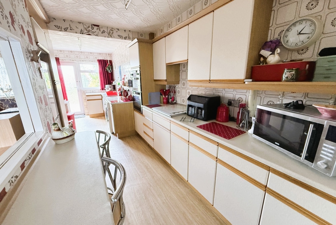 The deceptively spacious accommodation comprises: Hall, 21′ Sitting Room, which opens to the Dining Room, with patio doors opening into the Rear Garden and also a generous 23′ fitted Kitchen. With the Three Bedrooms, two of which have extensive built-in wardrobes and a refitted Shower Room.