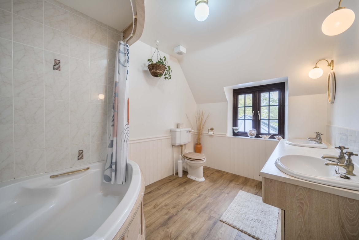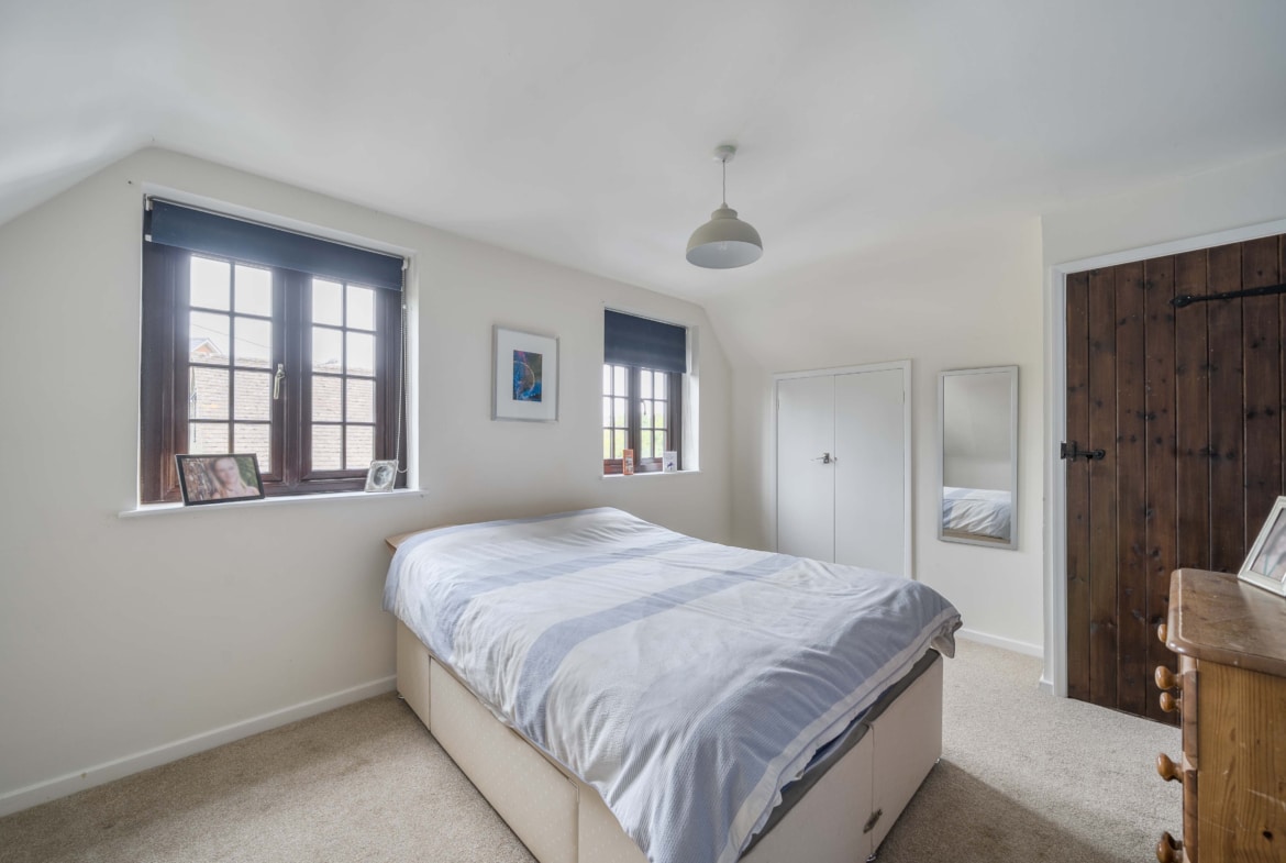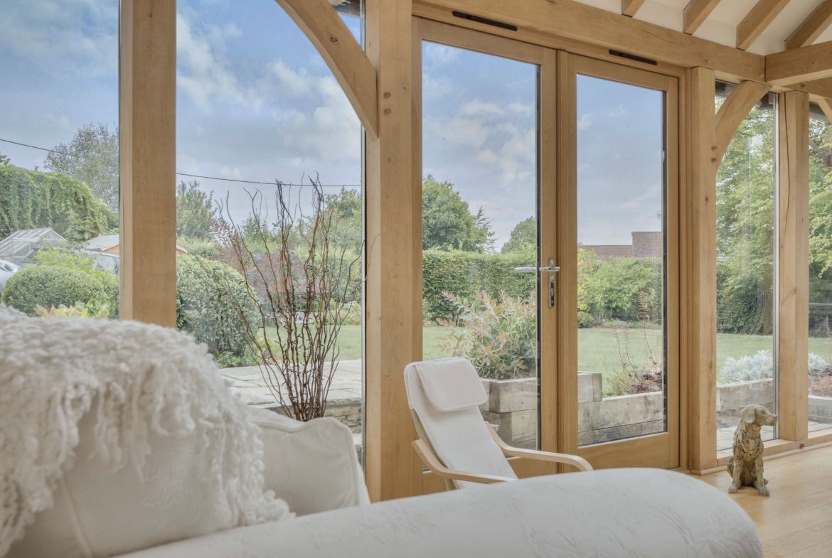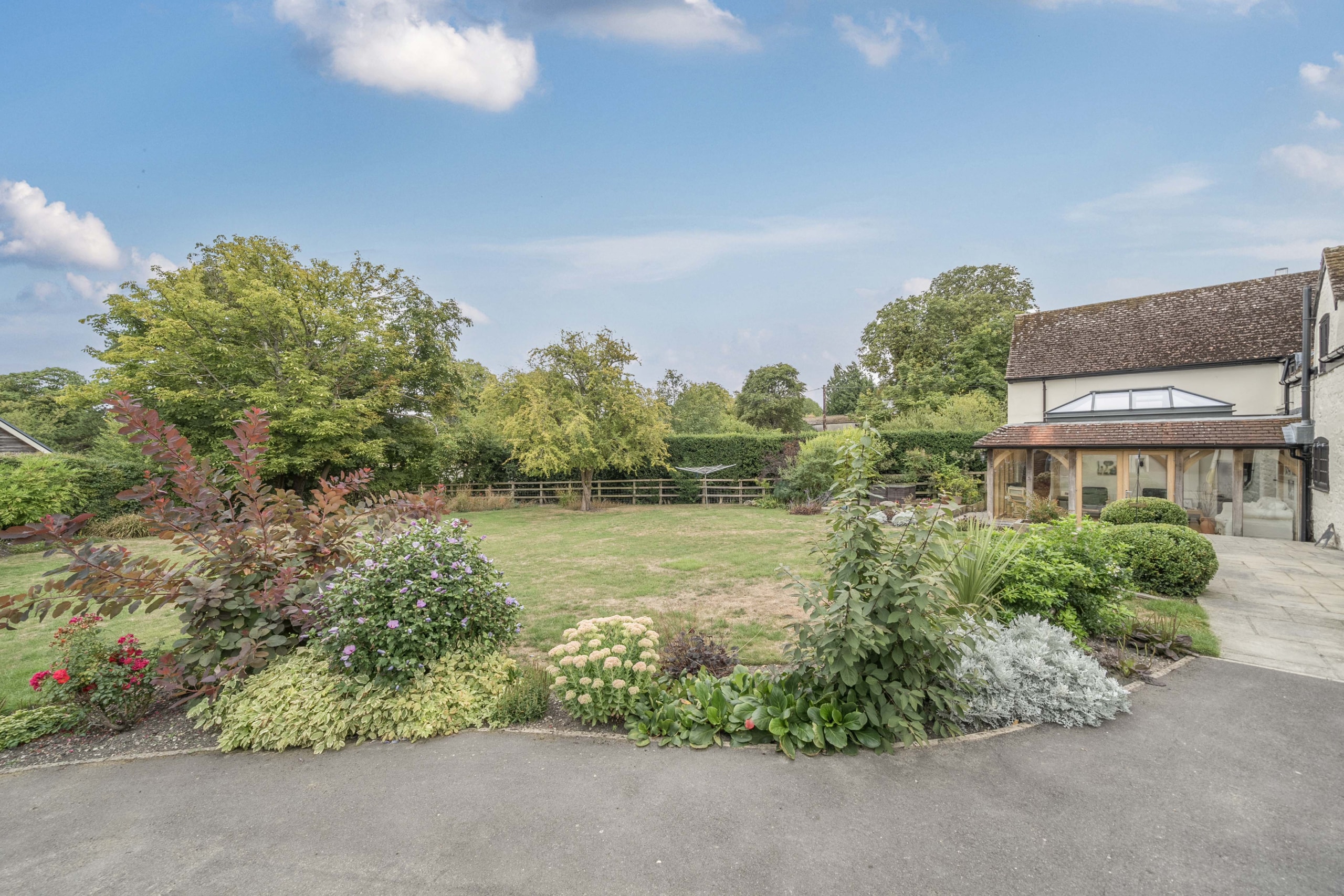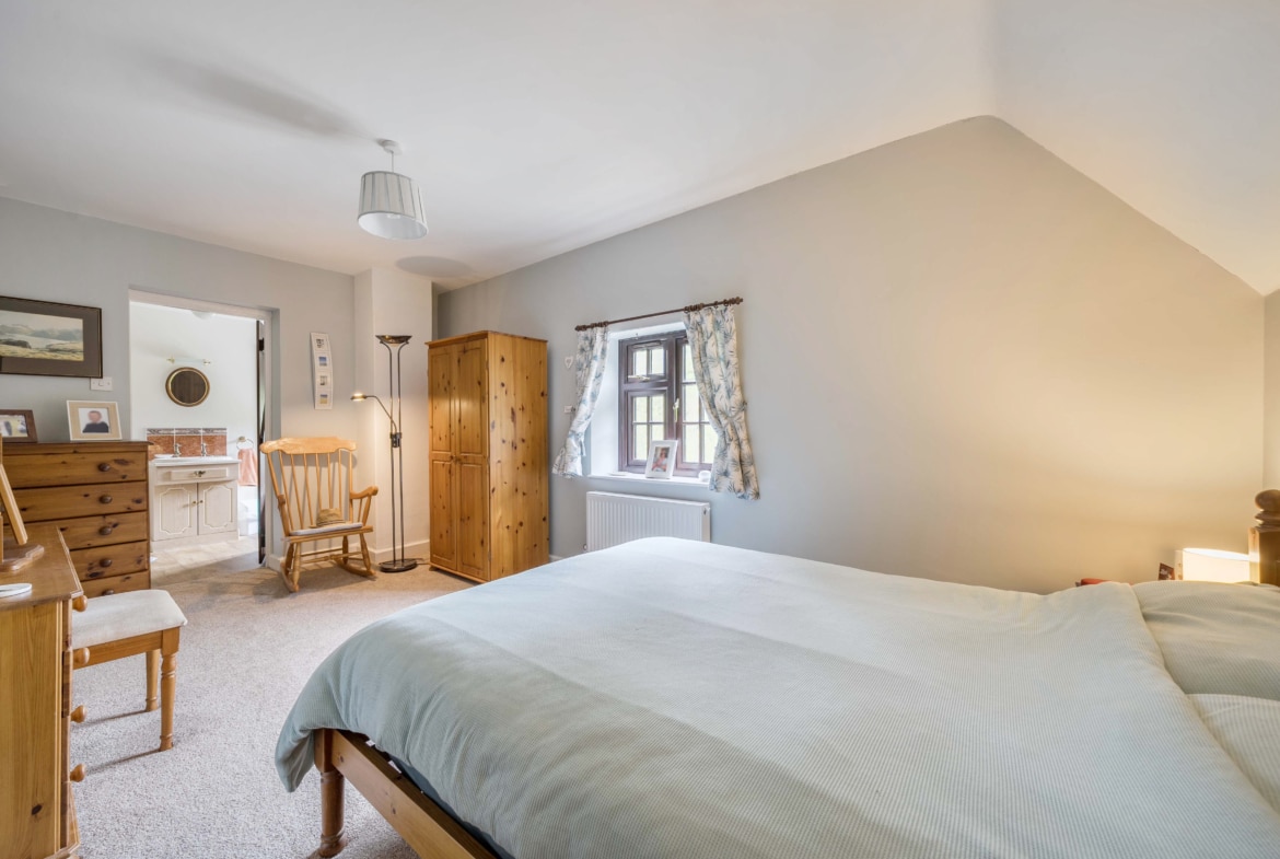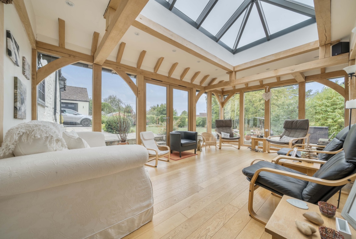 Inside, the property is filled with warmth and versatility. The kitchen and breakfast room enjoy a homely, country feel, flowing naturally into the dining room and spacious living room next door – featuring original woodburning fireplace – perfect for entertaining! A cosy snug makes for an ideal play room, while the spectacular, heated, oak-framed sun room seamlessly connects the indoors with the landscaped garden. Flooded with natural light, this space provides panoramic views of the greenery and creates a year-round haven for relaxation.