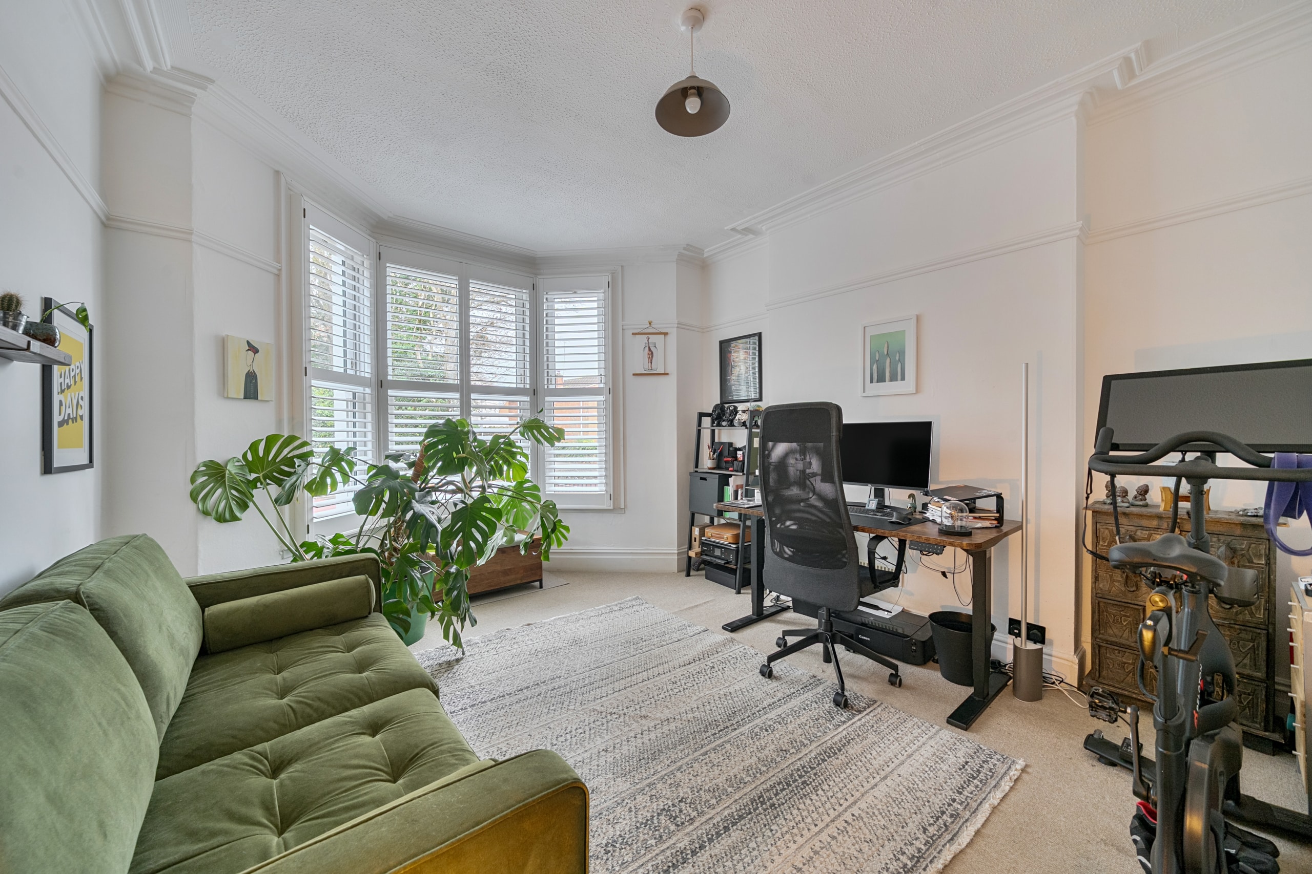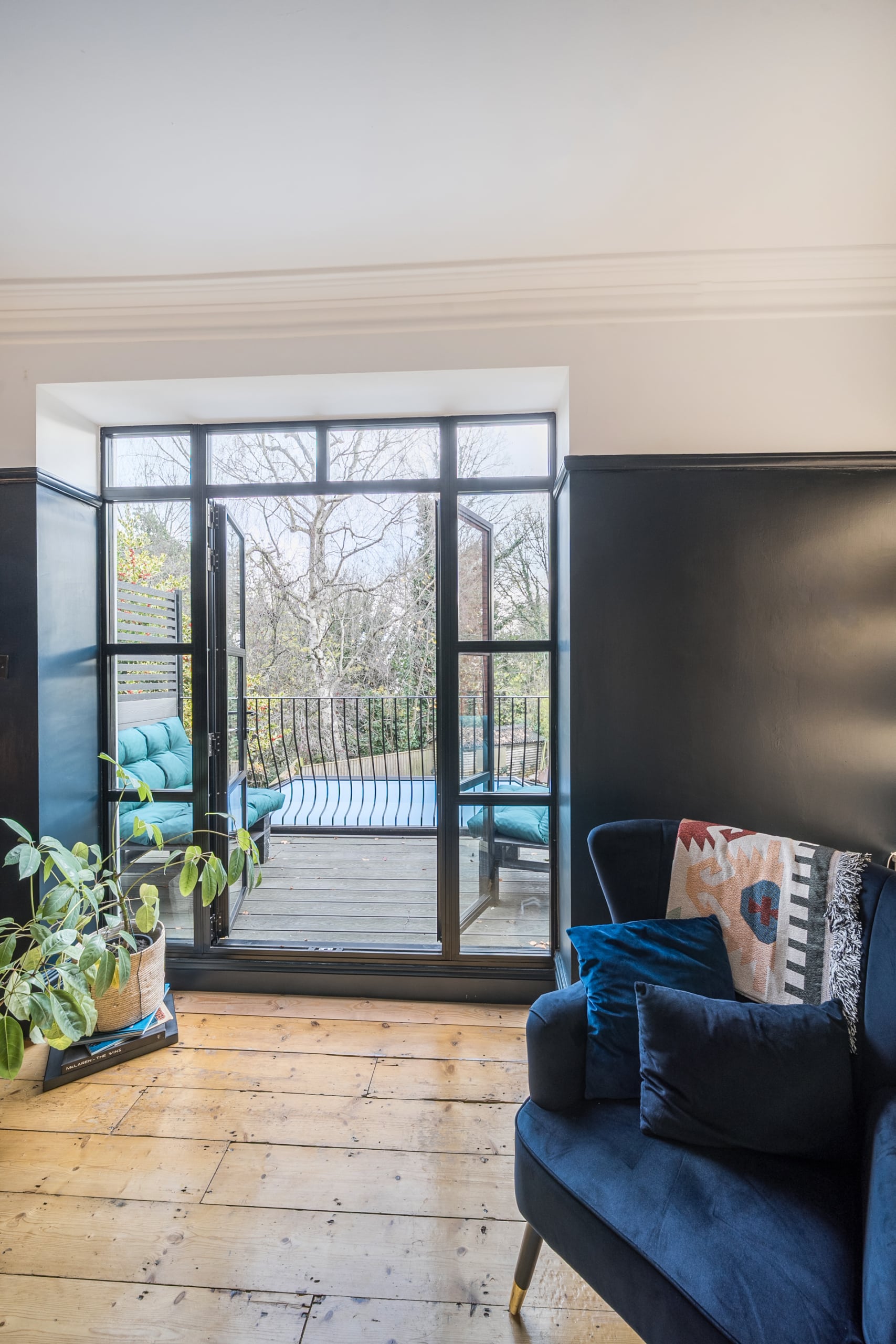 Upon entry you are greeted by a entrance porch providing access to the welcoming hallway. This floor boasts a generous bay-fronted room which could be used as either a bedroom or further reception. Opposite you will locate a further reception room boasting black crittall doors which open out on to the balcony space with tree-lined views and allow a significant of light to flood through the property. You will also find a w/c conveniently placed on this floor.