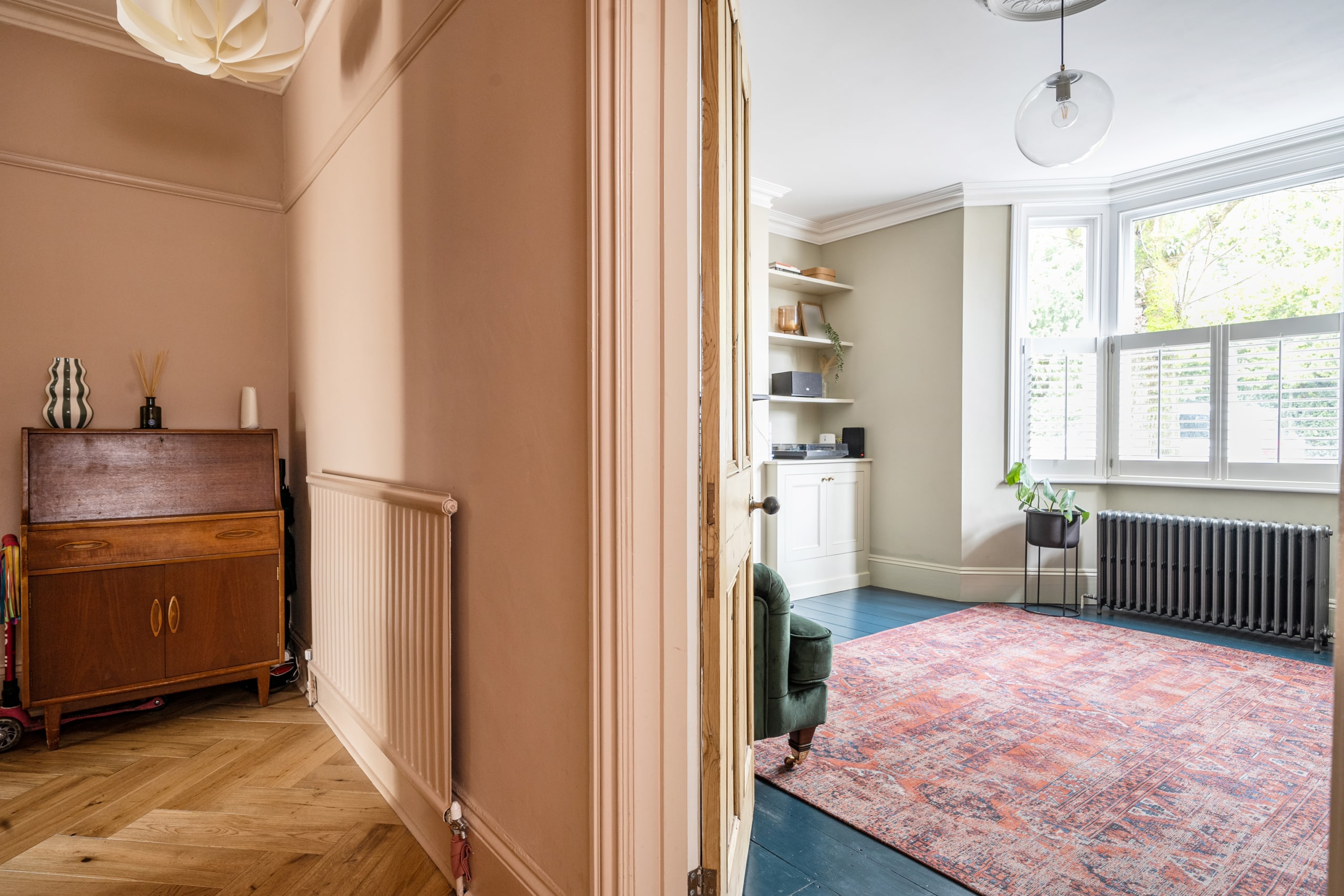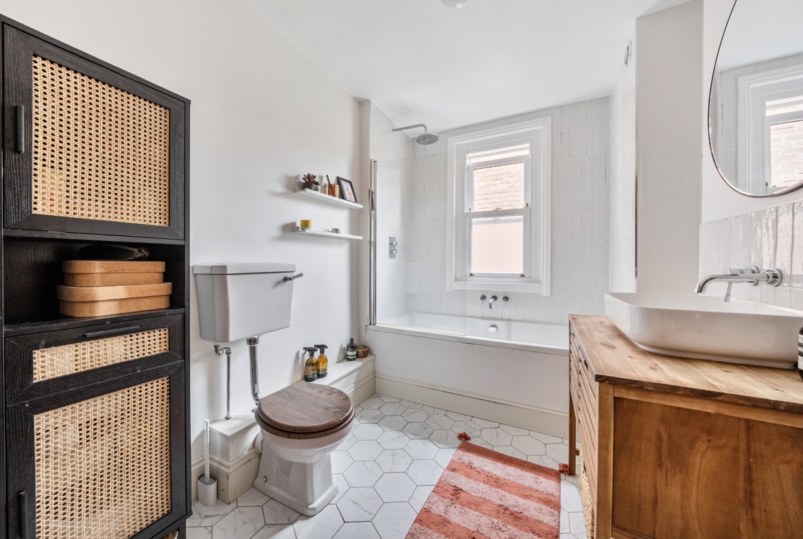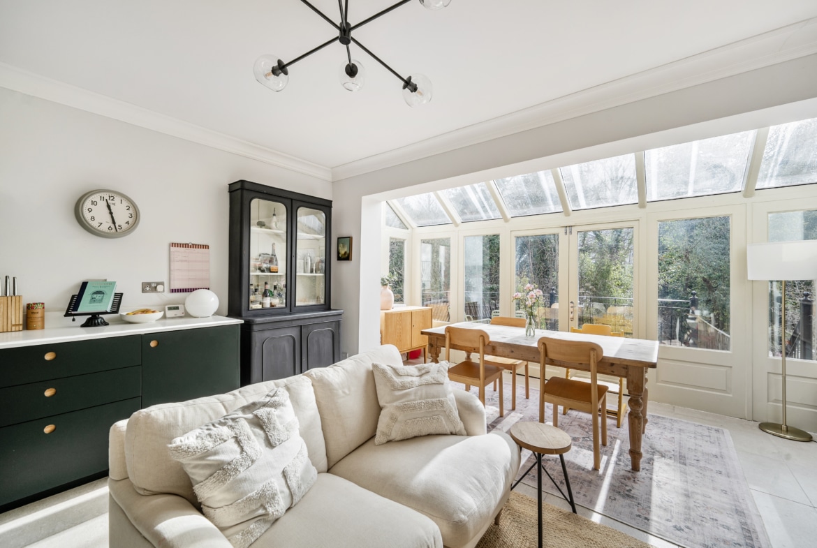 This period home, has been renovated/restored to a superb standard by the current owners. Upon entry you are greeted by a welcoming entrance hall boasting beautiful parquet flooring. The lounge is located on your right with feature fireplace, bay window with shutter blinds and original restored flooring just to name a few things that help create a warm and welcoming space to unwind. The kitchen/dining/living space on the back of the property is the real hub of the home and a brilliant place to socialise and spend time with friends and family. The kitchen provides ample cupboard and storage space and the light flowing through from the glass doors and windows to the rear really make this space. The area also opens onto the Balcony, overlooking the garden. A w/c has been thoughtfully created on this floor along with a useful utility cupboard.