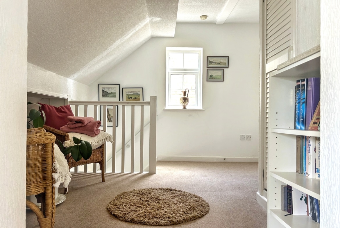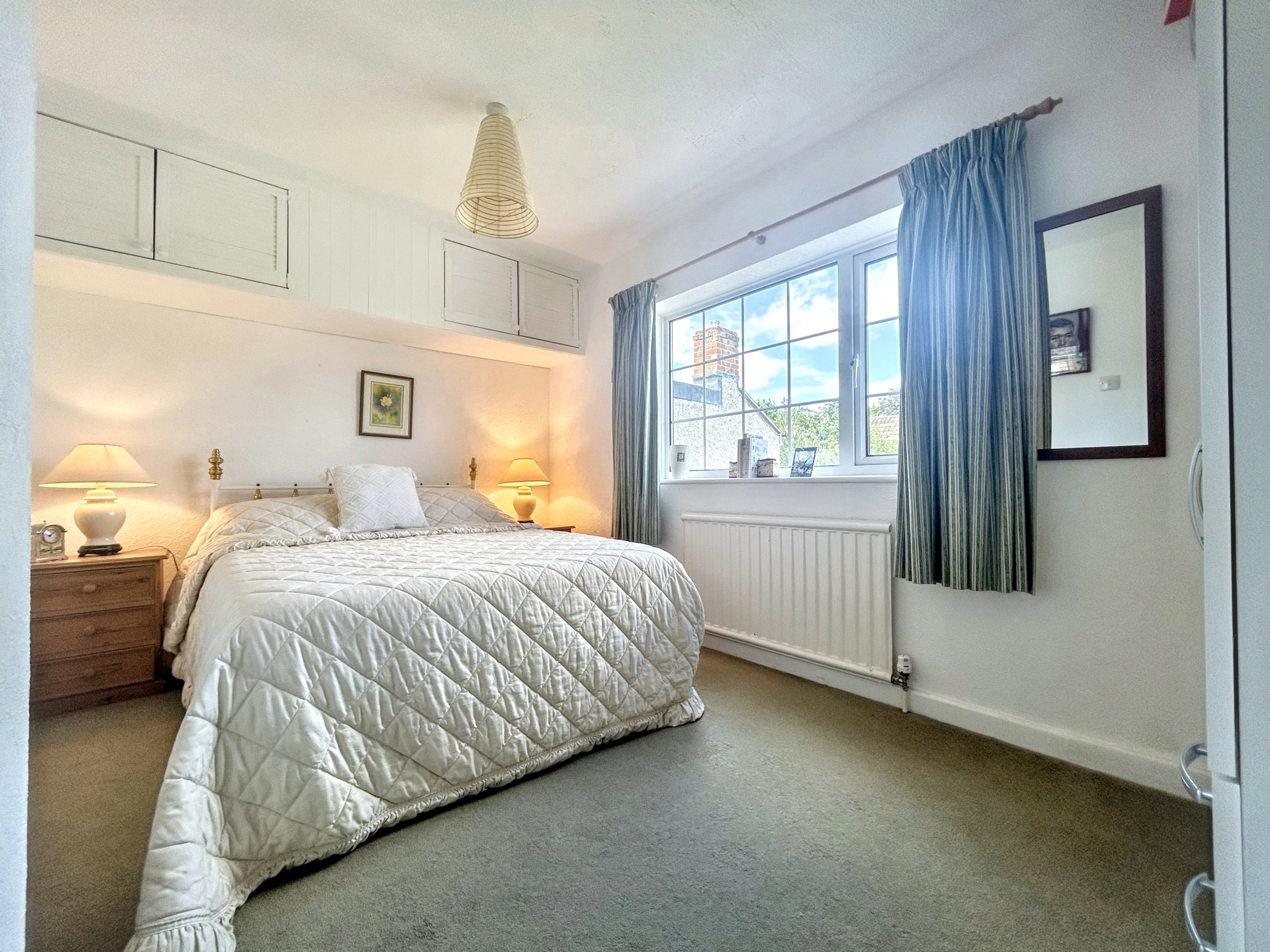 Set on a generous plot, the property benefits from a double garage situated to the rear, along with ample driveway parking for multiple vehicles. The private, non-overlooked rear garden is fully enclosed by a characterful stone wall, providing a tranquil and secure outdoor space ideal for relaxing or entertaining.