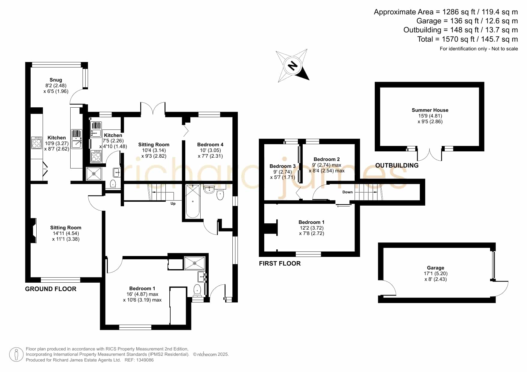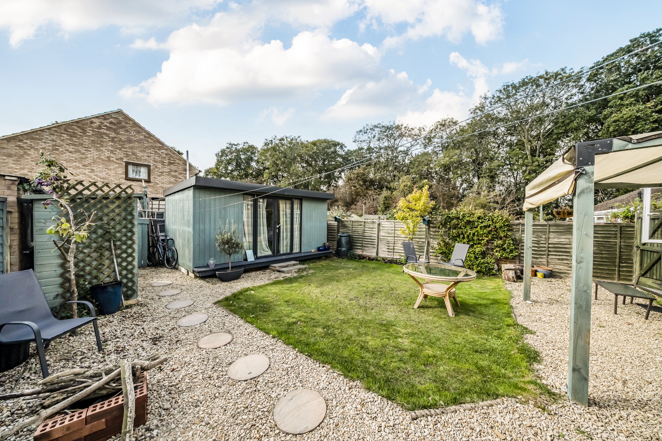 Externally, the rear garden is laid to a mix of lawn and stones, with a substantial outbuilding, which would make an ideal home office, gym, or summer house. To the rear, there is both parking and a garage, thoughtfully designed with doors at each end for convenient access directly into the garden.