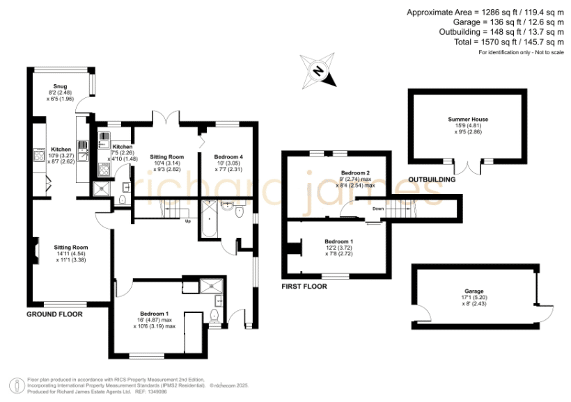 Externally, the rear garden is laid to a mix of lawn and stones, with a substantial outbuilding, which would make an ideal home office, gym, or summer house. To the rear, there is both parking and a garage, thoughtfully designed with doors at each end for convenient access directly into the garden.