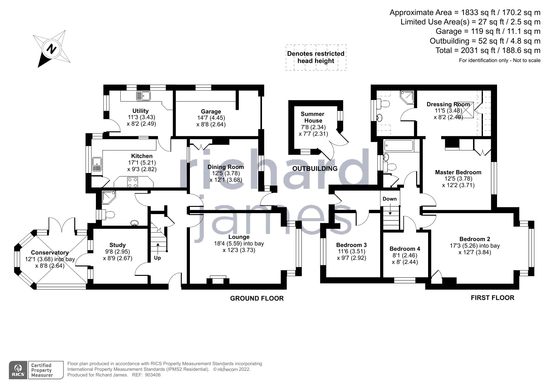 Upstairs, the spacious master bedroom benefits from its own dressing room and en-suite shower room, while three further bedrooms and a well-sized family bathroom (with potential to create a stylish four-piece suite) complete the first floor.