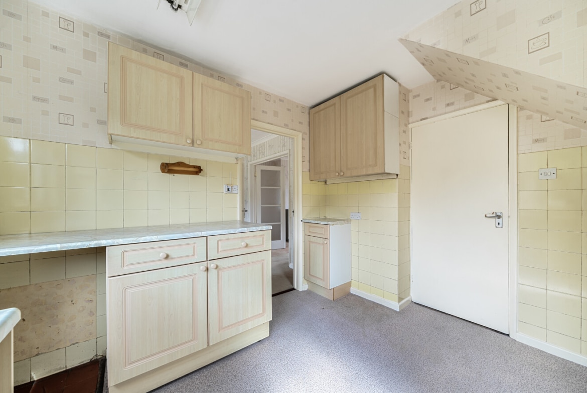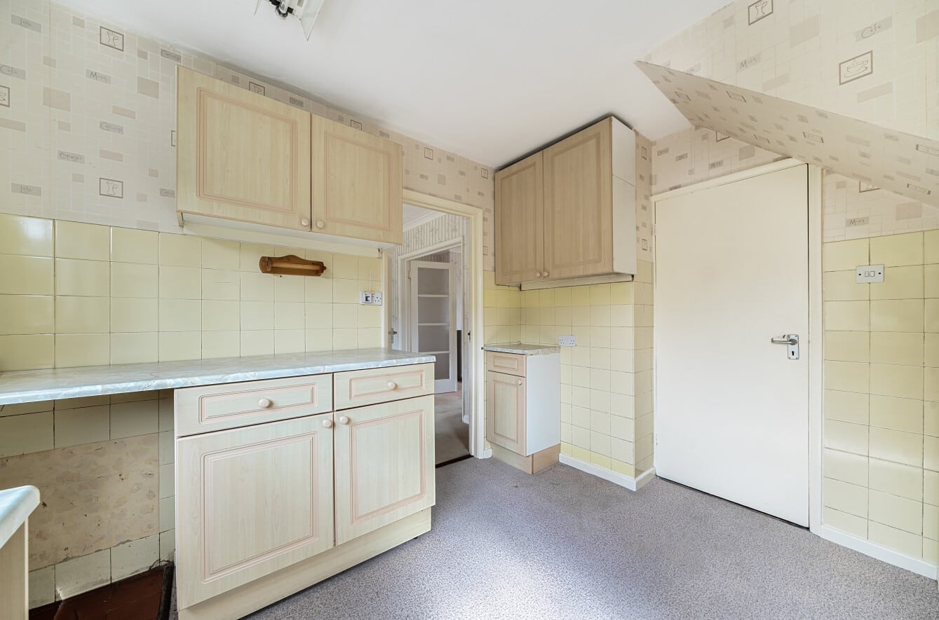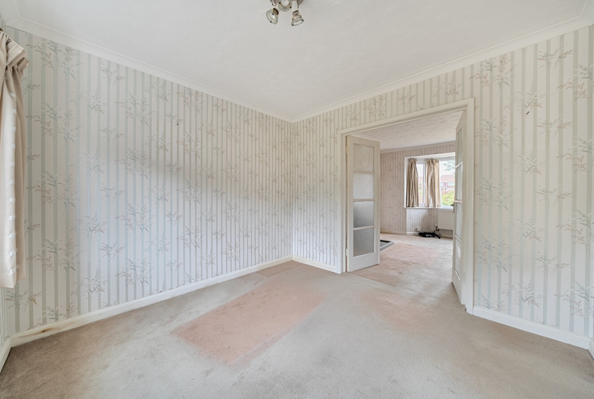 Set back from the road, the property is welcomed by a charming front garden, a private driveway, and a garage—providing ample parking and curb appeal. Inside, you’ll find a large lounge that opens into the dining area, creating a bright and sociable living space. The kitchen is located just off the dining area, with potential for modernisation and redesign to suit your style.