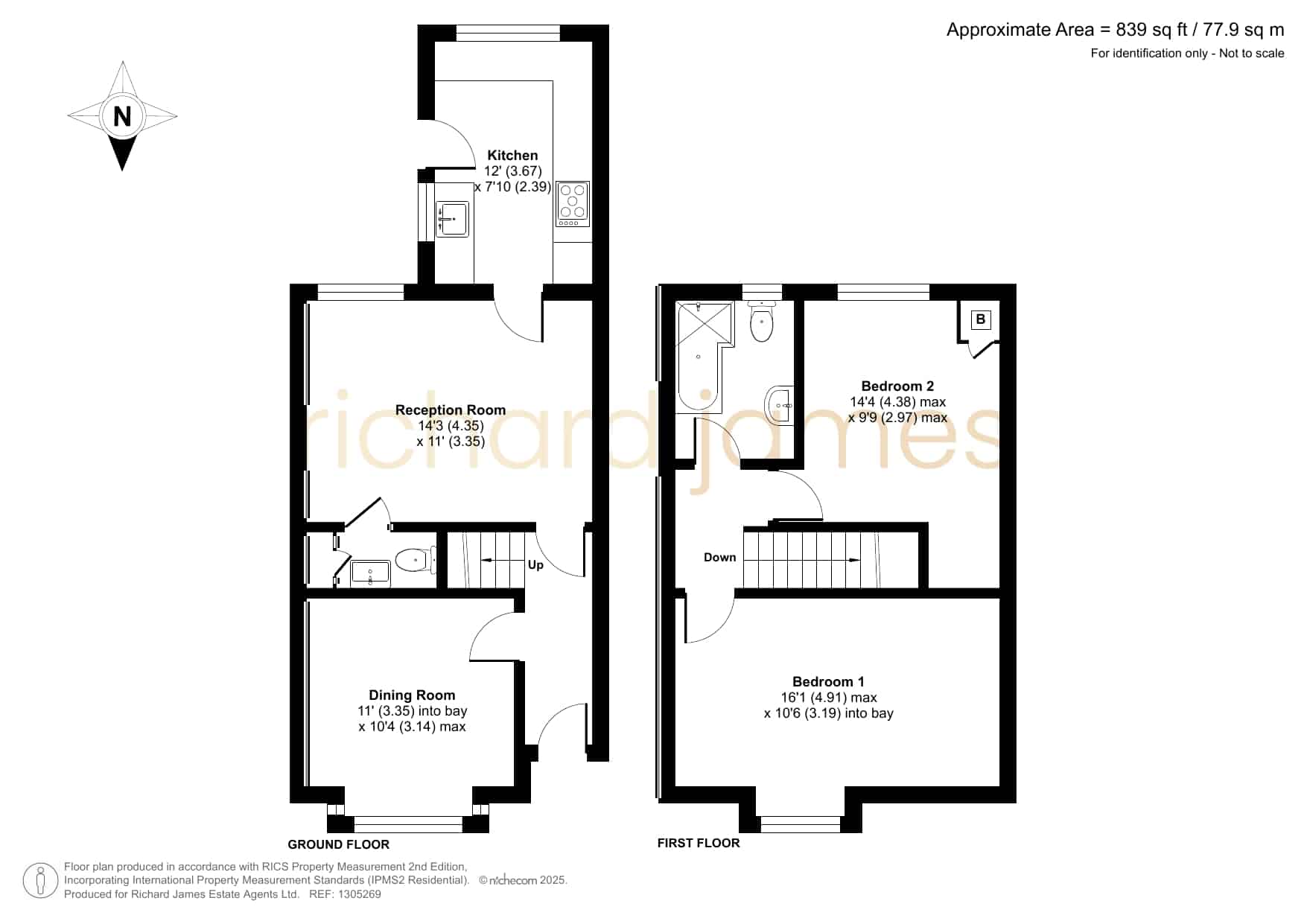 The first floor offers; first floor landing, a bay fronted main bedroom, a modern bathroom plus the second bedroom which is also a double.