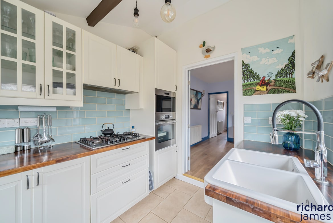 The ground floor living accommodation comprises; Entrance hall, a bay fronted living room, a second large reception room and a modern kitchen.