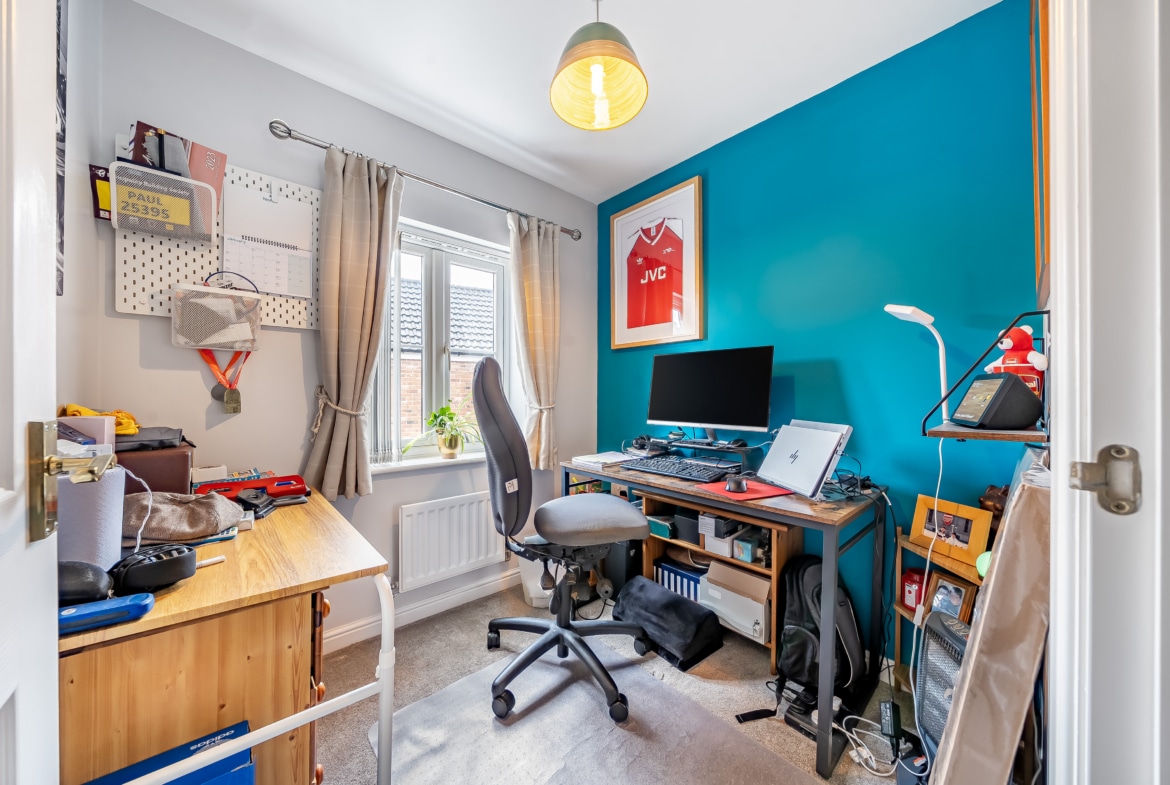 The outdoor space of this property is designed for low maintenance living, featuring a south-facing rear garden with artificial turf and a generous patio area, ideal for enjoying outdoor activities and al fresco dining. Additionally, the property offers convenient access to the garage, with an off-road parking space located in front, ensuring practicality and ease of use for residents with vehicles.