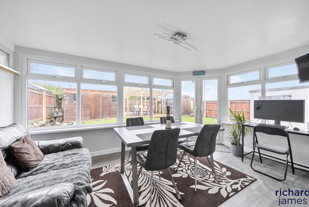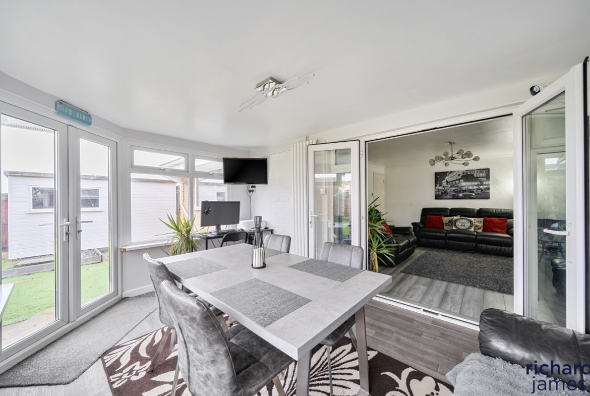 Nestled in a serene cul-de-sac, this delightful detached bungalow offers impeccable single-storey living, ideally suited for those seeking tranquillity and convenience. The property boasts a spacious sitting room that provides a welcoming ambiance for relaxation. Adjacent to this, the dining room presents an inviting space for your family meals or entertaining guests. Two generously sized double bedrooms provide ample space and comfort. The home further benefits from a beautifully refitted Shaker style kitchen, complete with modern appliances and finishes, perfect for culinary enthusiasts. Completing the interior is a refitted bathroom, finished to a high standard, ensuring comfort and luxury at every turn. With gas central heating and uPVC double glazing throughout, this home ensures warmth and energy efficiency year-round.