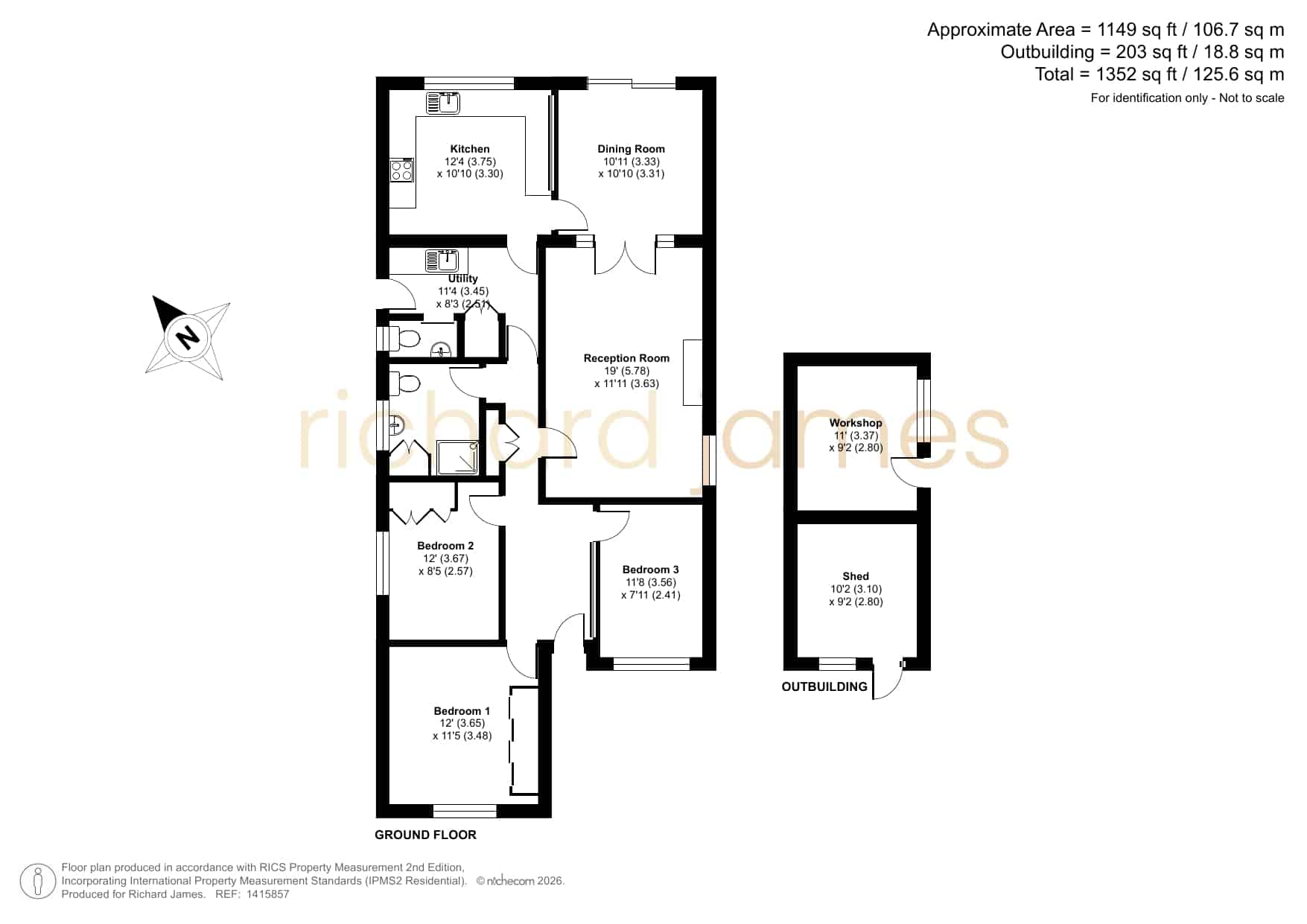 Situated on the ever-popular Whitworth Road in Swindon, this well-proportioned three-bedroom detached bungalow offers versatile single-level living with the added benefit of a substantial outbuilding. Extending to approximately 1,149 sq ft, the accommodation comprises a generous reception room measuring over 19ft, a separate dining room, and a fitted kitchen with adjoining utility room, creating a practical and sociable layout ideal for modern family life. There are three bedrooms, including a spacious principal bedroom, alongside a well-appointed family bathroom and additional WC facilities. The layout provides excellent flexibility for those seeking home working space or ground-floor living throughout. Externally, the property is further enhanced by a detached outbuilding incorporating a workshop and shed (approx. 203 sq ft), perfect for hobbies, storage or business use, all set within a well-established residential location offering convenient access to local amenities, schooling and transport links.