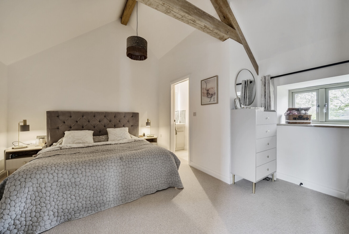 The property features a stunning open-plan layout with characterful architectural touches, creating a warm yet airy feel throughout. The master bedroom benefits from a modern en-suite, while three additional well-proportioned bedrooms are served by a luxurious four-piece family bathroom.