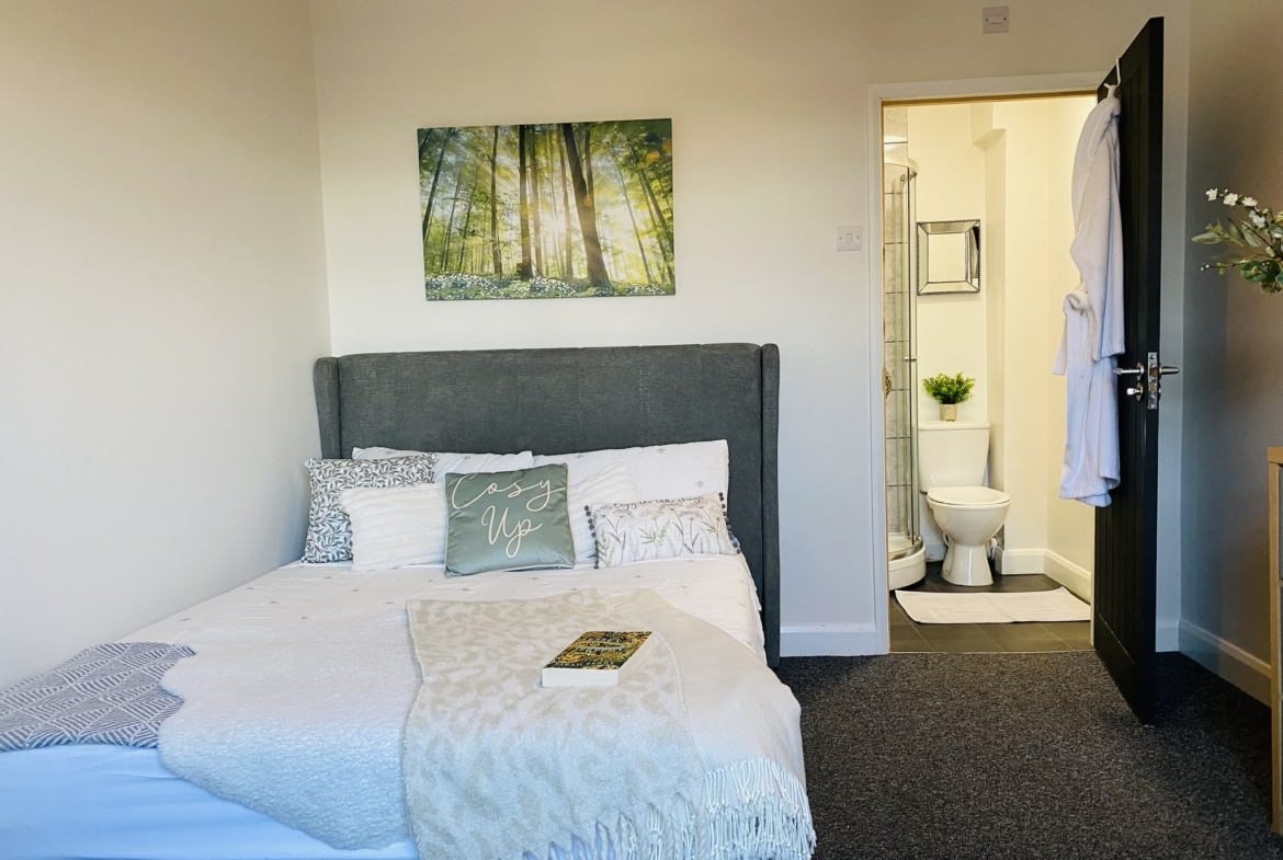 The property comprises four well-proportioned double bedrooms, three with their own en-suite shower room, plus fourth small double with a separate bathroom, a configuration that continues to attract strong demand from professional tenants . The house also benefits from a shared kitchen and communal living area, together with a private rear garden.