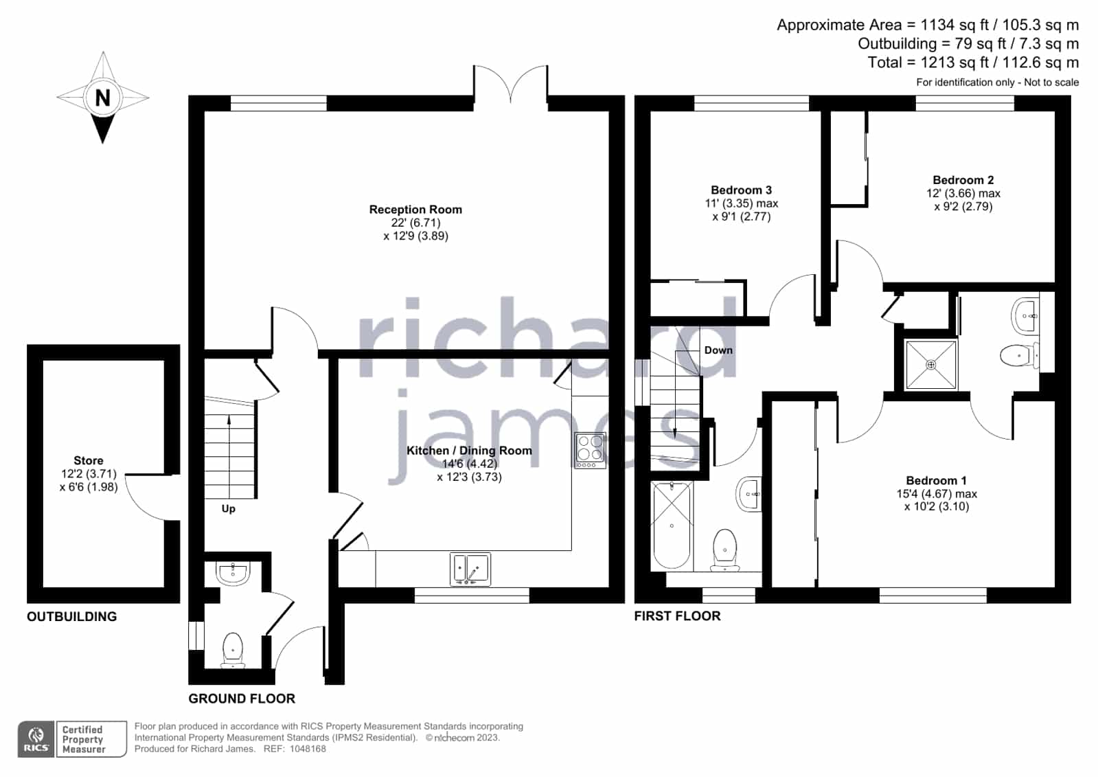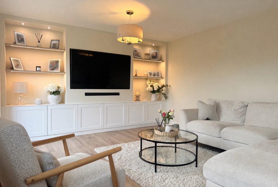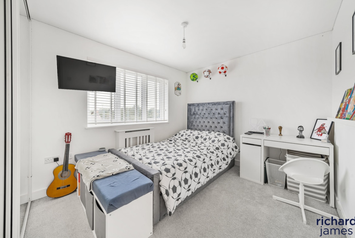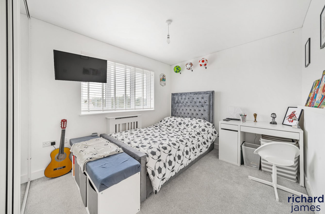 The well-balanced accommodation briefly comprises three bedrooms, including a spacious principal bedroom with ensuite, a contemporary fitted family bathroom, and a bright, airy landing. To the ground floor, there is a welcoming entrance hall, cloakroom, an impressive dual-aspect 22ft living room featuring a stylish built-in media wall, and a modern kitchen/dining room fitted with a range of integrated appliances—perfect for both everyday living and entertaining.