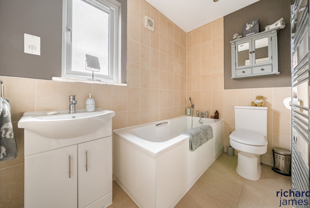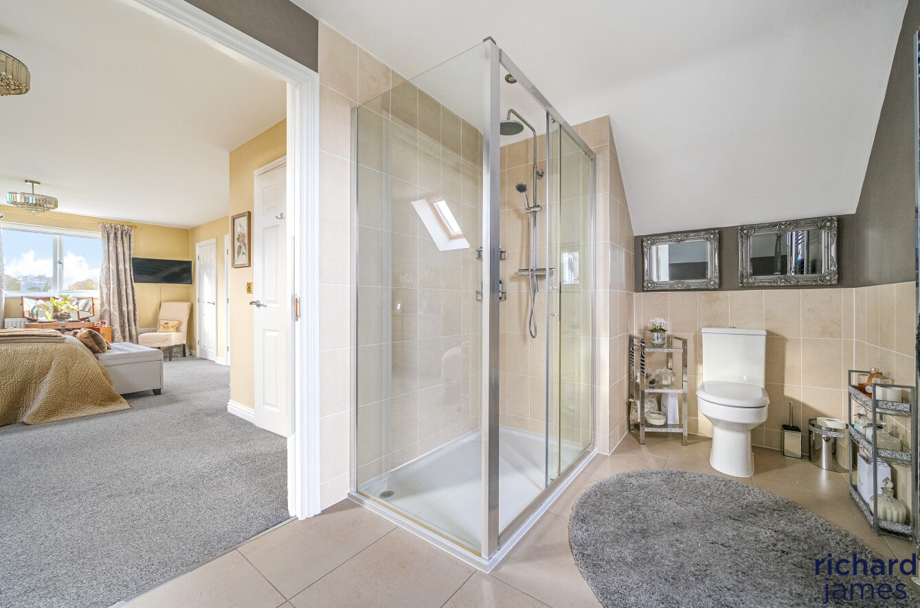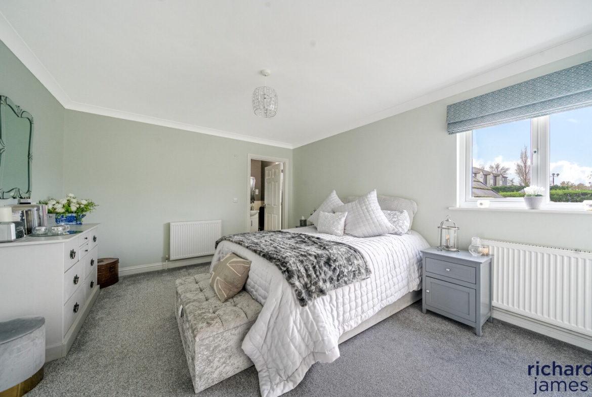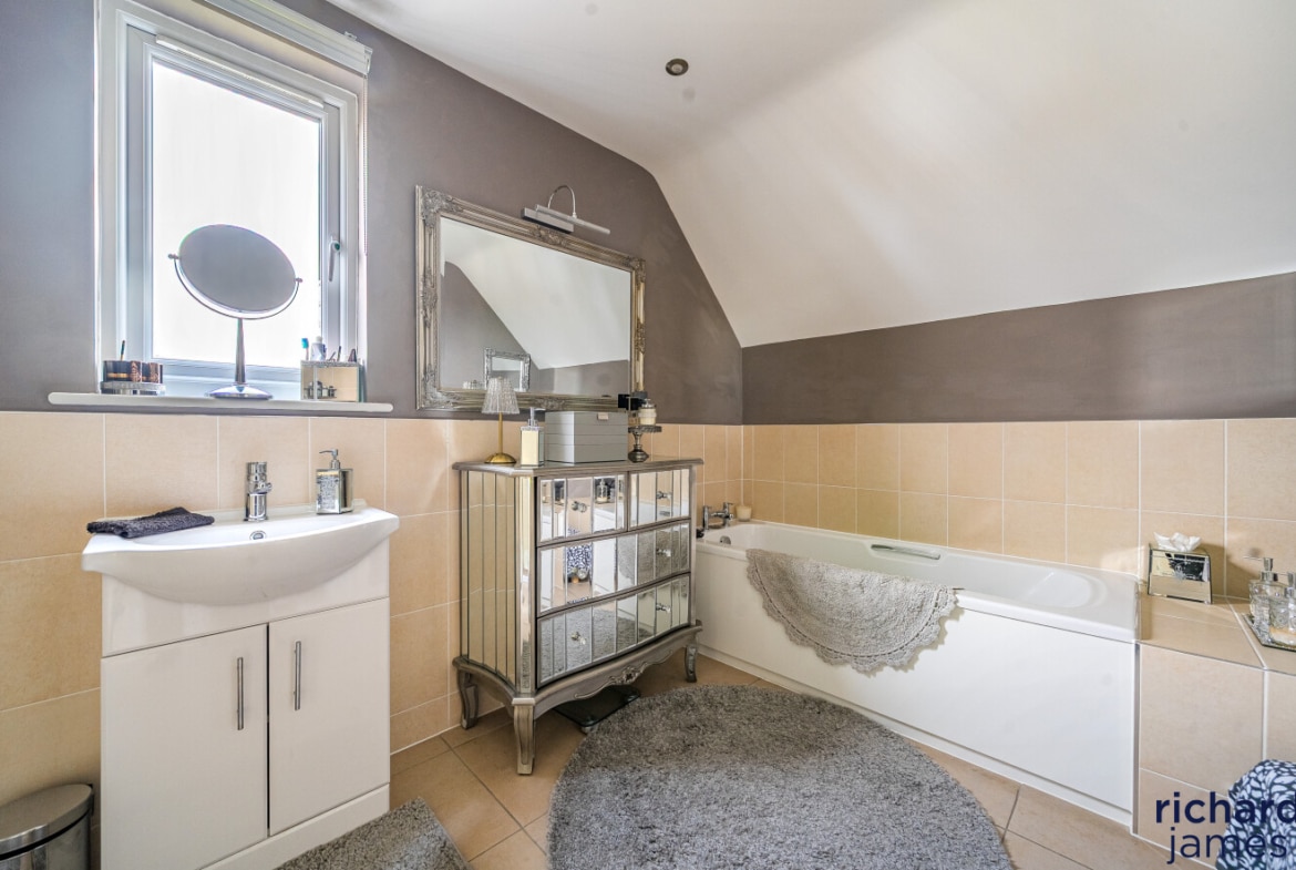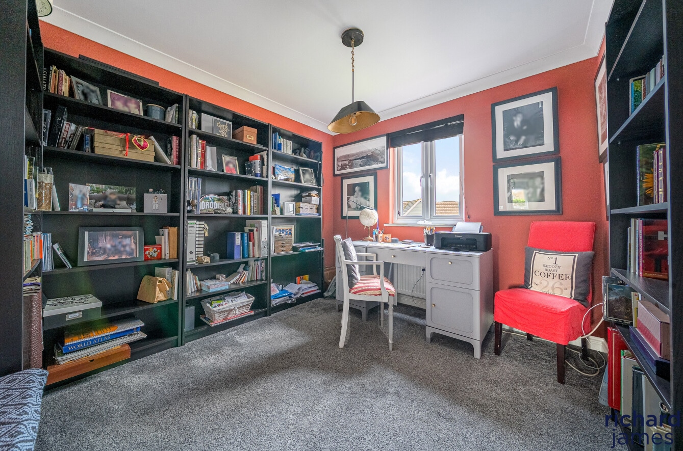 Upstairs, the first and second floors host four beautifully appointed bedrooms. The principal suite feels like a private sanctuary, complete with fitted wardrobes and a luxurious en-suite bathroom. The guest bedroom also includes wardrobes and its own en-suite, ideal for visiting friends and family. Two additional spacious bedrooms and a stylish bathroom ensure comfort for all.