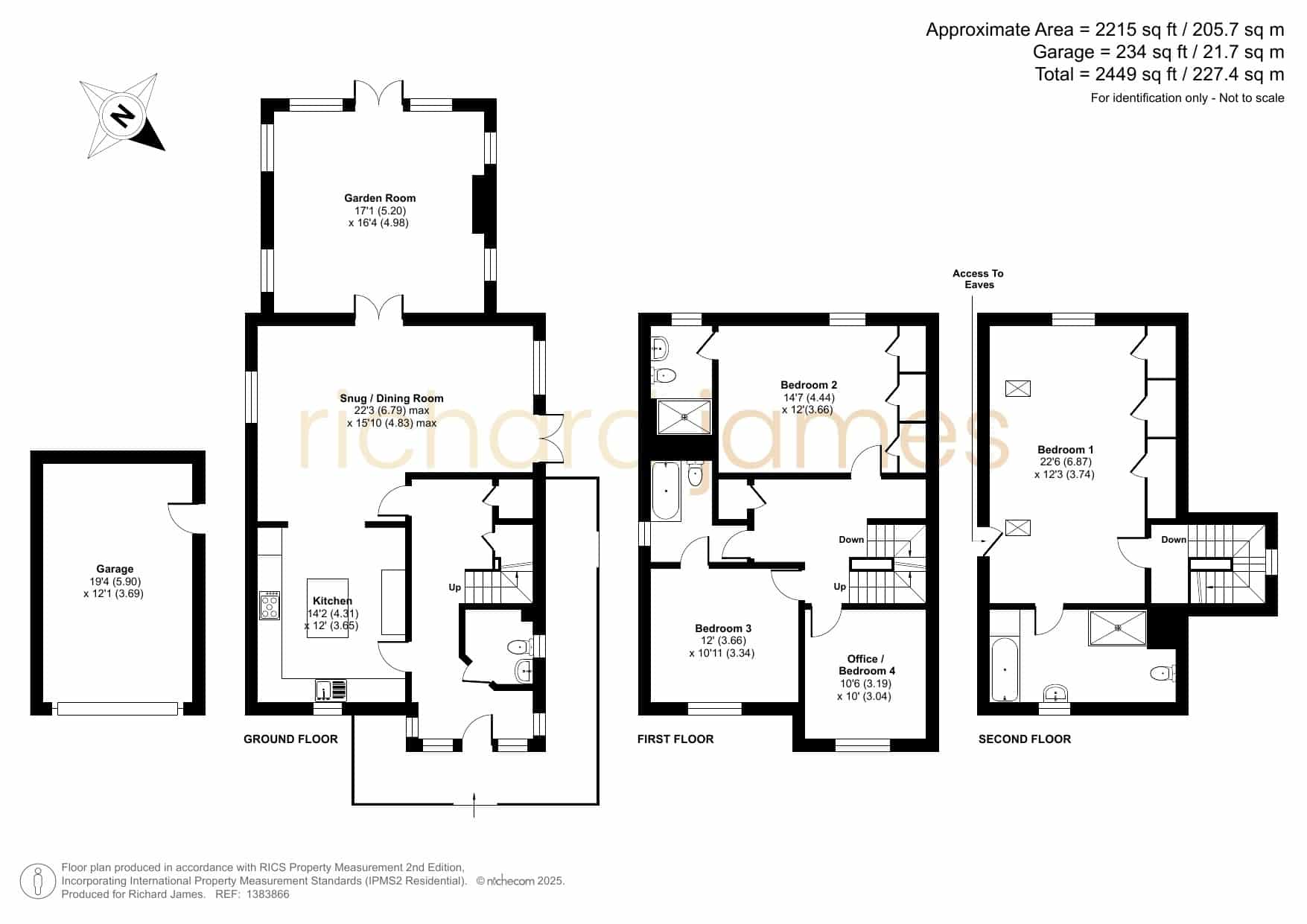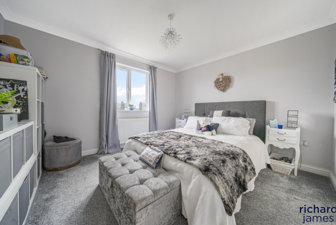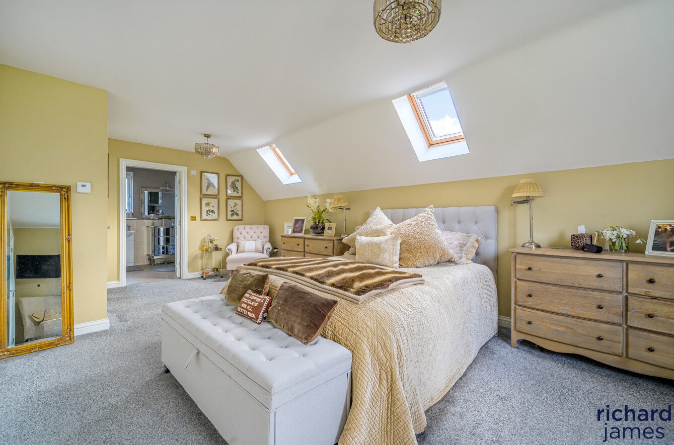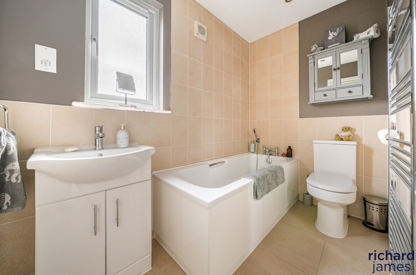 Upstairs, the first and second floors host four beautifully appointed bedrooms. The principal suite feels like a private sanctuary, complete with fitted wardrobes and a luxurious en-suite bathroom. The guest bedroom also includes wardrobes and its own en-suite, ideal for visiting friends and family. Two additional spacious bedrooms and a stylish bathroom ensure comfort for all.