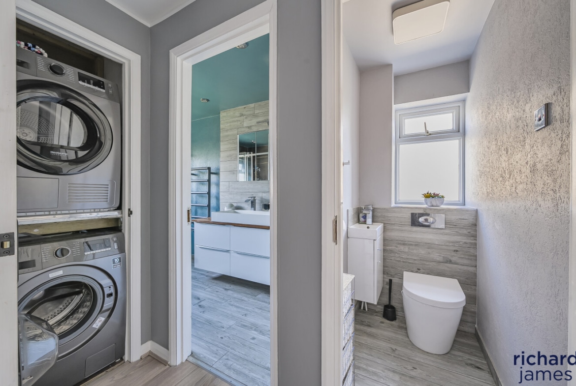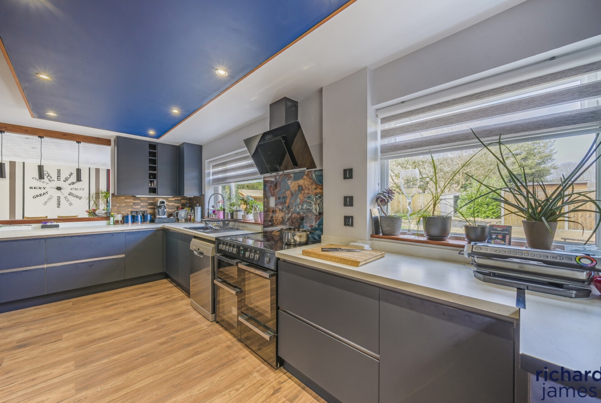 The ground floor features a spacious open-plan lounge and dining area with direct access to the garden, perfect for entertaining. The modern kitchen is stylish and functional, and a convenient downstairs shower room adds to the home’s practicality. Upstairs, you’ll find four large bedrooms, all well-proportioned, along with a contemporary family bathroom.