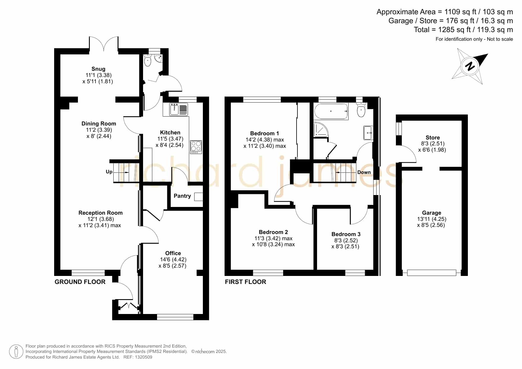 The heart of the home is a spacious open-plan lounge and dining area, ideal for both relaxing and entertaining, with double doors opening onto the rear garden, allowing natural light to flood the space. The modern kitchen is well-equipped and thoughtfully designed, featuring a generous pantry and views over the garden.