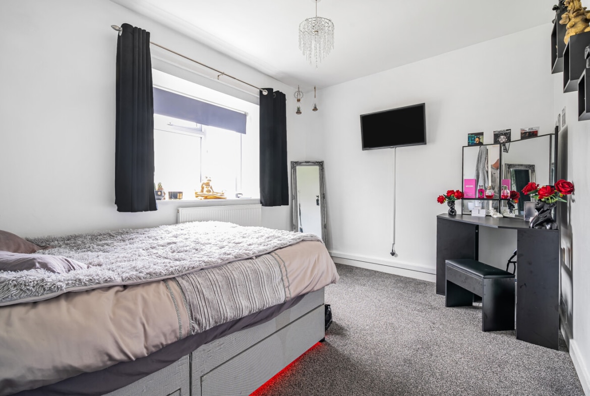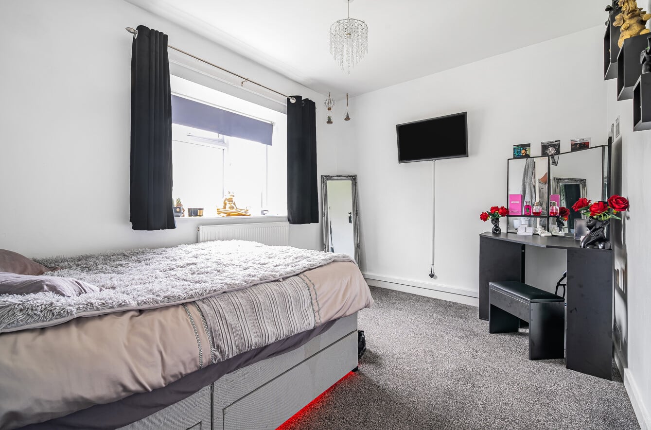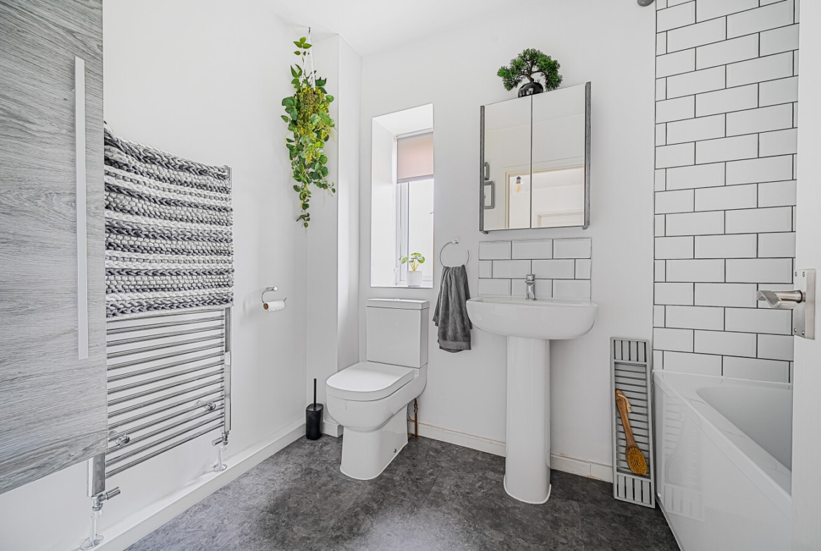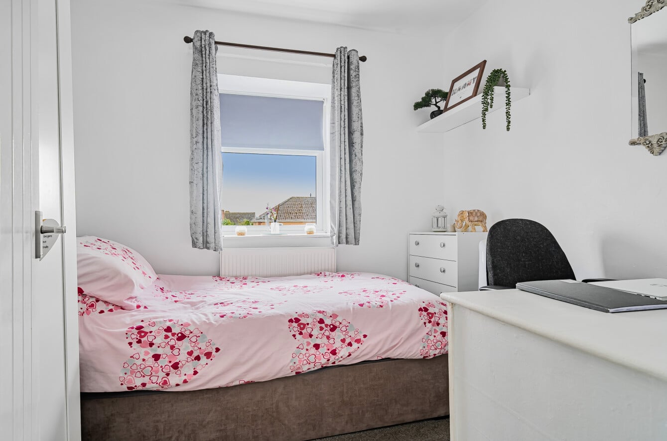 Upstairs, the property offers three bedrooms, all of which are well laid out and versatile. The main bedroom is a generous double, the second bedroom also comfortably fits a double bed, while the third is ideal as a child’s room, guest room or home office. The bathroom has been tastefully updated with modern fittings and a clean, neutral finish.
