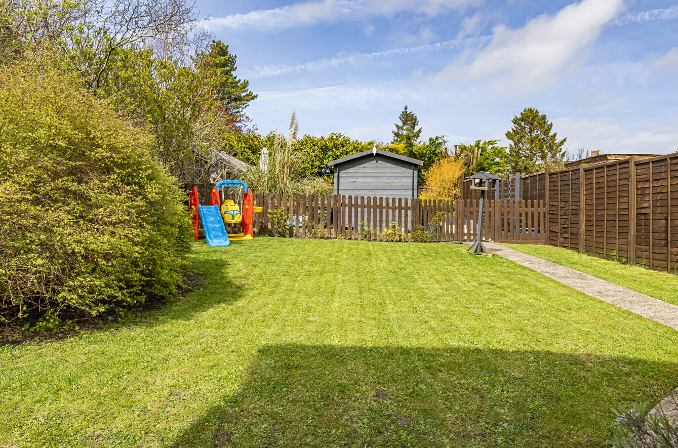 One of the standout features of the home is the rear garden. Generous in size and enjoying a sunny aspect, it is mainly laid to lawn with space for seating, play equipment or further landscaping, offering a fantastic outdoor space that feels private and usable throughout the warmer months. There is also the benefit of an outbuilding/summer house, providing excellent storage or potential for hobbies or home working. To the front, off-road parking is provided on the driveway.