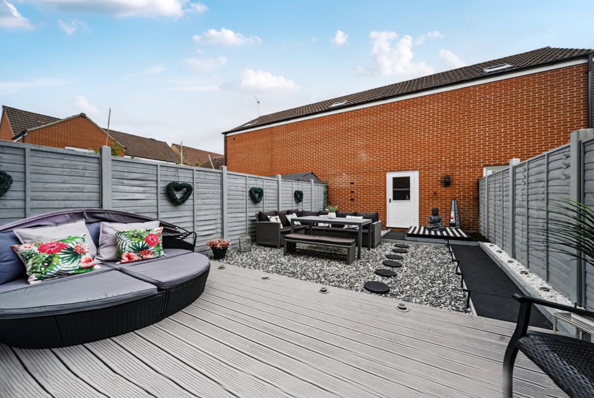 Located in the desirable area of Haydon End, Swindon SN25, this beautifully presented three-bedroom terraced townhouse offers spacious and modern accommodation across three floors, ideal for families or professionals. The ground floor features a contemporary fitted kitchen, a convenient downstairs WC, and a generous lounge/dining room with French doors opening to the private rear garden. On the first floor, you’ll find two well-proportioned bedrooms and a stylish family bathroom, while the entire top floor is dedicated to an impressive master suite with built-in storage and a private en-suite shower room. The property also benefits from a garage, additional off-street parking, and is situated close to excellent local amenities, schools, parks, and transport links including the A419 and M4. Offering over 1,100 sq ft of well-designed living space, this home is perfect for those seeking comfort, convenience, and a peaceful setting in a popular North Swindon location.