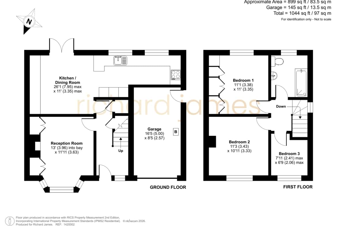 Upstairs is home to three bedrooms all really well decorated. The master is bayfronted providing plenty of room. The second bedroom has had bespoke warbobes built in, allowing for plenty of storage. The main bathroom has been refitted by the current owners and is beautifully presented. The third room is a perfect single bedroom or home office.