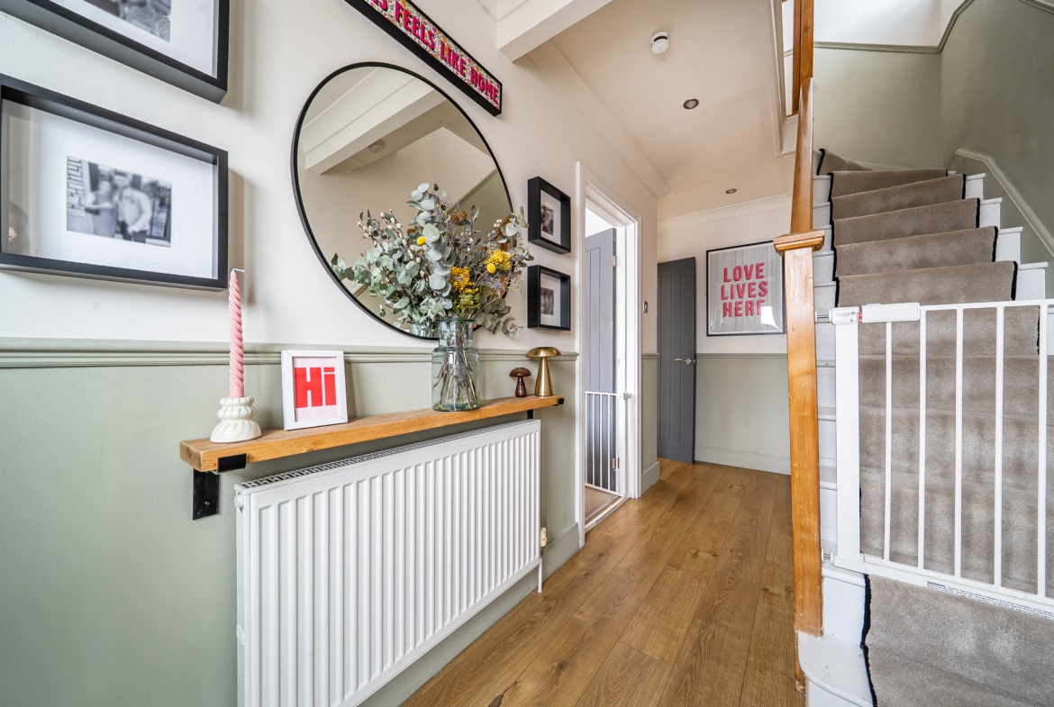 Upon entry you are greeted by a welcoming entrance hall with access to all of the rooms the ground floor has to offer. The new front door teamed with the panneling and stair runner really create a great first impression. The lounge is bayfronted with bespoke cabintes either side of the chimney wall, a perfect space to unwind of a evening. The kitchen dining space on the back of the home is great for hosting friends and family with modern kitchen and plenty of space for the dining table, with patio doors out onto the large south facing rear garden.