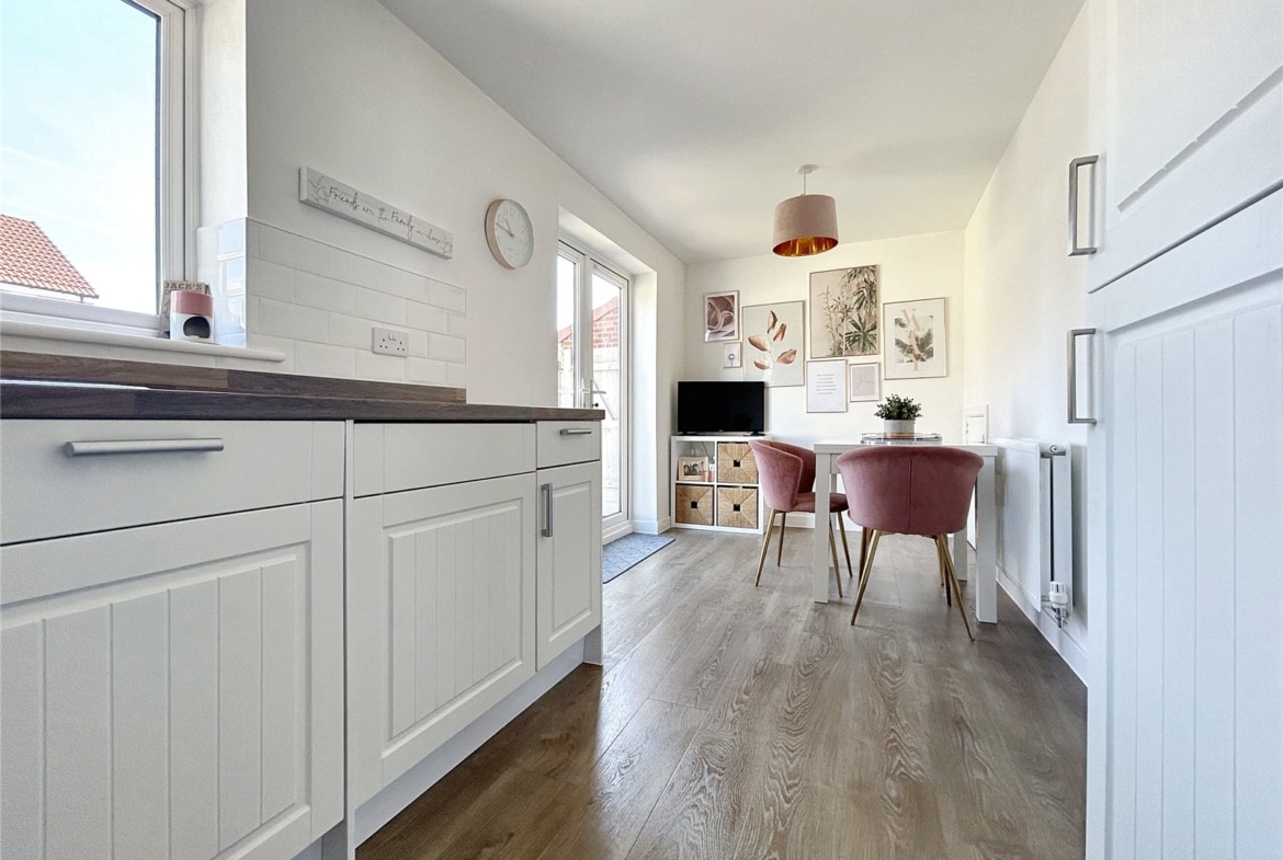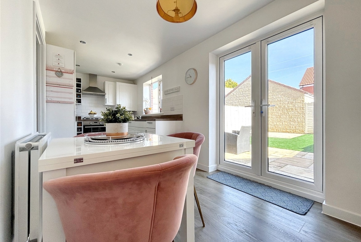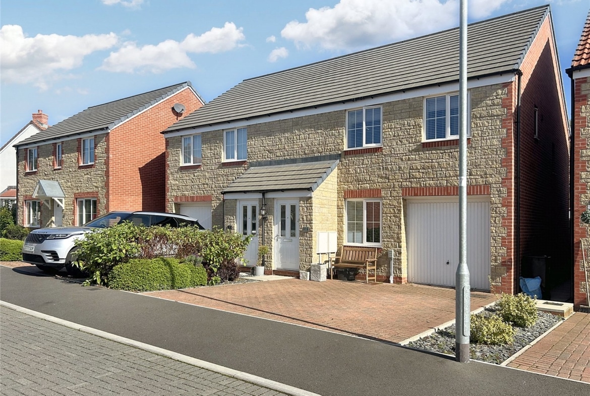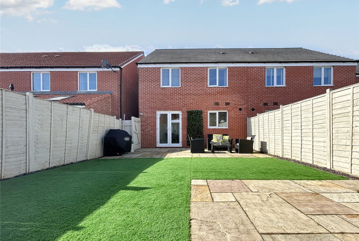 Nestled in the picturesque market town of Highworth, this stunning three-bedroom semi-detached home offers modern living with the charm of a quaint community. Built in 2019, the property is presented to an exceptional standard throughout and still benefits from 5 years remaining on its NHBC Warranty, ensuring peace of mind for the future.As you step inside, through the entrance porch, you are greeted by a bright and spacious living room, perfect for relaxing with family or entertaining guests. The heart of the home is the contemporary kitchen/dining room, which offers ample space for cooking and dining with family and friends. French doors open out to a beautifully landscaped garden, designed for both relaxation and recreation. The garden features two large patio area, perfect for al fresco dining, and artificial lawn. With gated side access and driveway parking for two vehicles at the front, this home is as practical as it is beautiful.