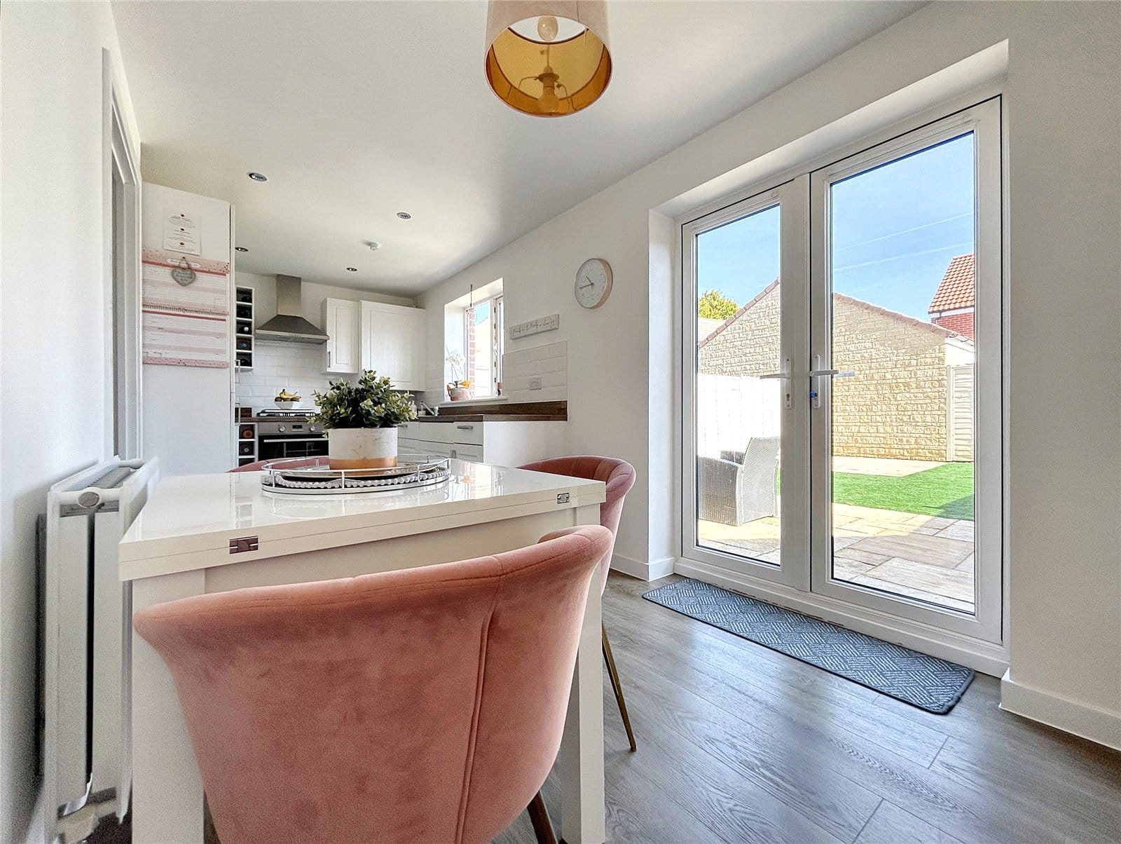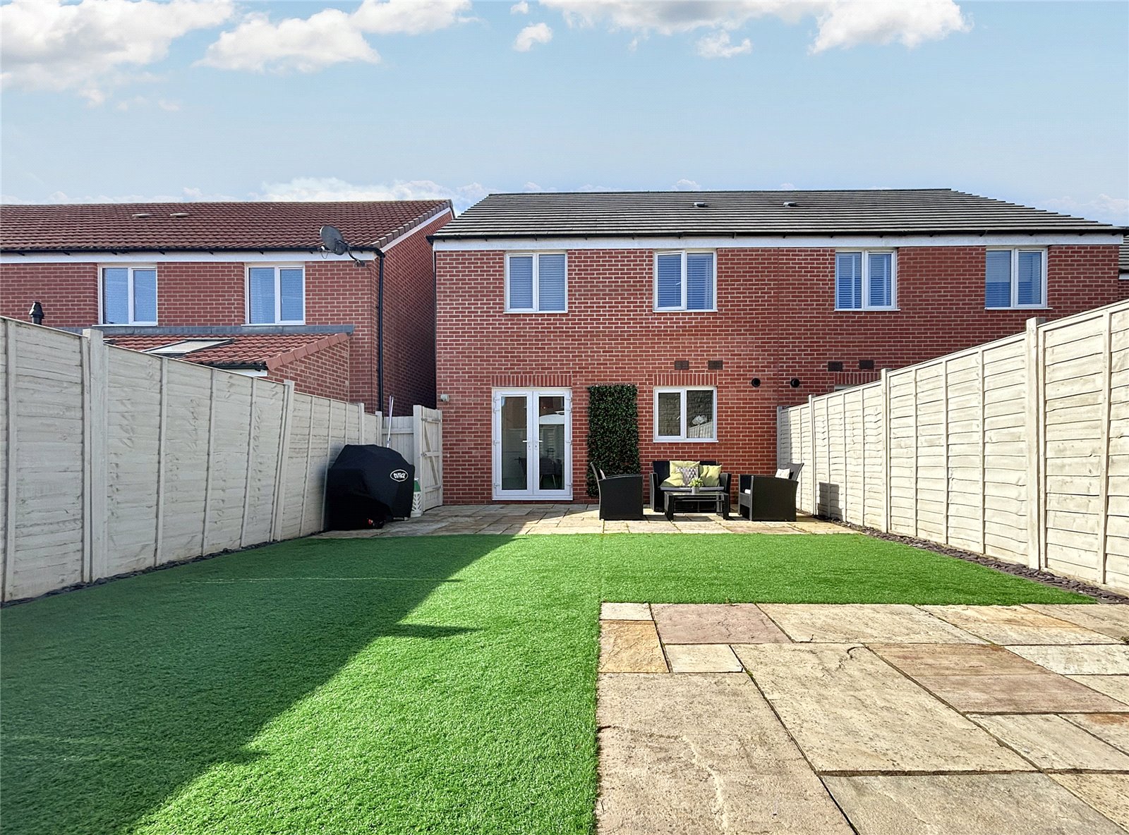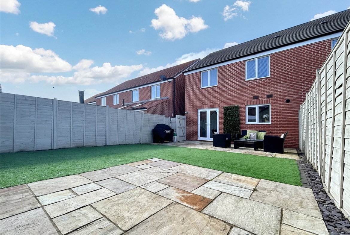 Nestled in the picturesque market town of Highworth, this stunning three-bedroom semi-detached home offers modern living with the charm of a quaint community. Built in 2019, the property is presented to an exceptional standard throughout and still benefits from 5 years remaining on its NHBC Warranty, ensuring peace of mind for the future.As you step inside, through the entrance porch, you are greeted by a bright and spacious living room, perfect for relaxing with family or entertaining guests. The heart of the home is the contemporary kitchen/dining room, which offers ample space for cooking and dining with family and friends. French doors open out to a beautifully landscaped garden, designed for both relaxation and recreation. The garden features two large patio area, perfect for al fresco dining, and artificial lawn. With gated side access and driveway parking for two vehicles at the front, this home is as practical as it is beautiful.