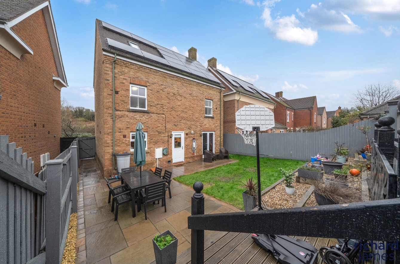 To the rear is a private rear garden with a large patio seating area and a good sized lawn offering great family and entertaining space. There is also gated rear access which leads to the garage and car port.