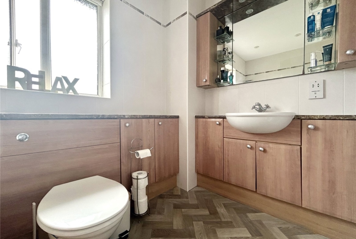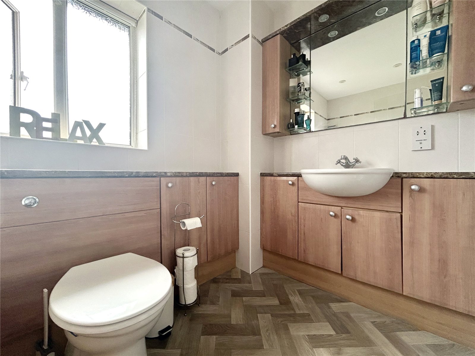 A family bathroom serves the upstairs, featuring a full suite including a bathtub with overhead shower, a wash basin, and a WC.Throughout the home, neutral tones and large windows create a light and airy feel, while thoughtful design provides a fantastic balance of communal living spaces and private retreats, perfect for modern family living.